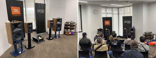 試聴会では、50周年を迎えるマークレビンソンとJBLの「4300シリーズ」の最新ブックシェルフモニタースピーカーの試聴を実施。