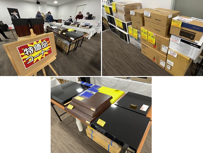 アンプやCDプレーヤー、スピーカー、オーディオアクセサリーなど、人気の商品がお買い得価格にて販売しており、多くのお客様で賑わっておりました。