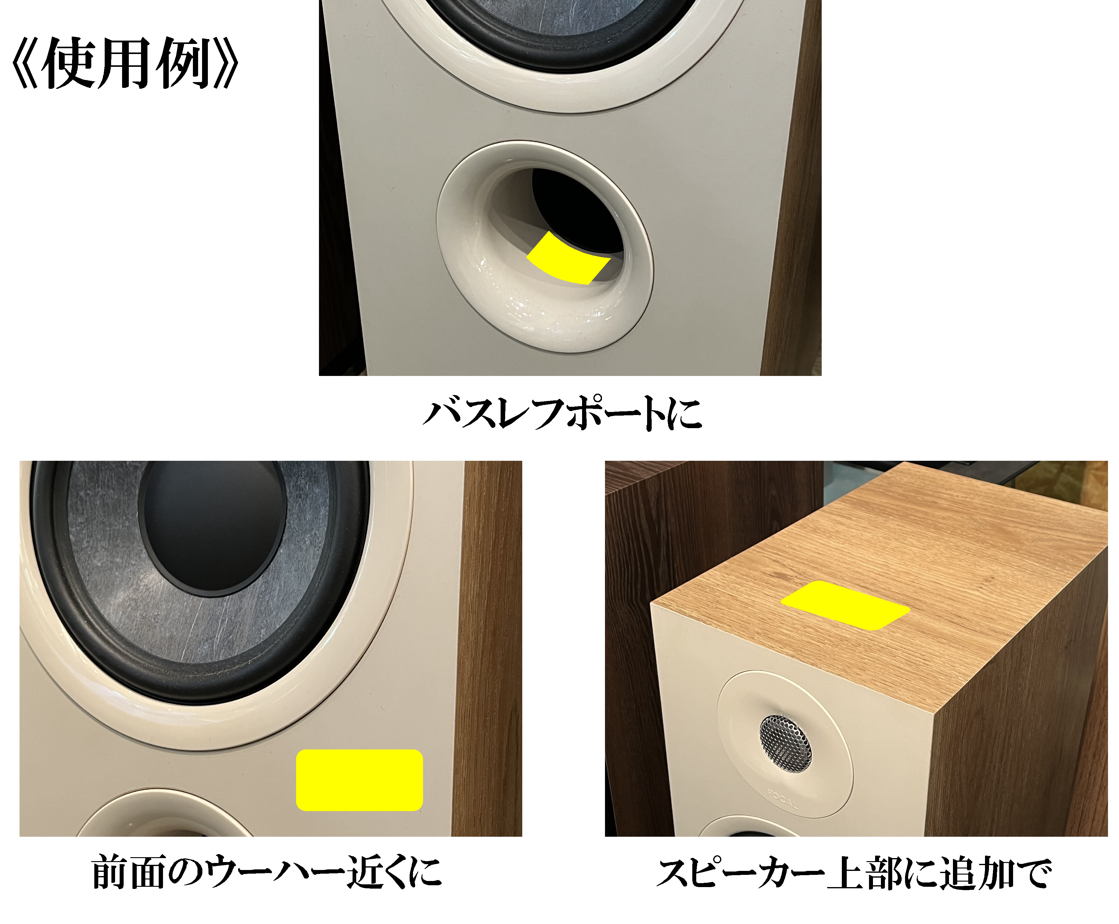 また、スピーカー本体の上部に追加で貼るとより効果を感じることが出来るそうです。