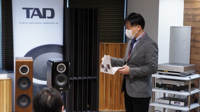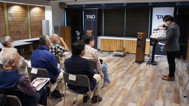 また、TAD-E2(トールボーイ型)とTAD-ME1(ブックシェルフ型)でスピーカーの比較試聴も行われ、様々なジャンルの曲を試聴しながら判りやすく比較することが出来ました。