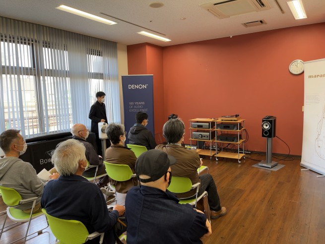 試聴会ではCD、アナログレコード、音楽ファイルを使用し、説明を混じえながらそれぞれの機器の試聴を実施。ピュアオーディオ、ネットワークオーディオ、ワイヤレスと、様々な音楽の楽しみ方を体験できました。