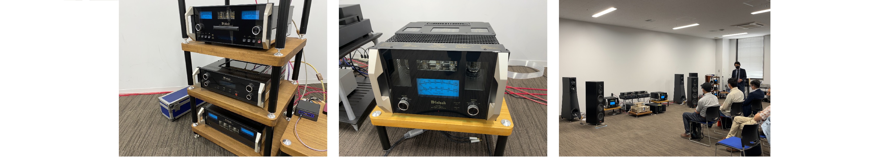 試聴会では、マッキントッシュの新製品のモノラルパワーアンプ「MC451」、SACDプレーヤー「MCD12000」を使用したセパレートアンプの試聴が行われました。スピーカーはアメリカMAGICOの「A5」を使用。他にもフランスMETRONOME TECHNOLOGIE(メトロノーム・テクノロジー)の新製品DAC/CDプレーヤー「Le Player4」も展示しておりました。この様に、普段なかなか見ることができない商品も展示されています!