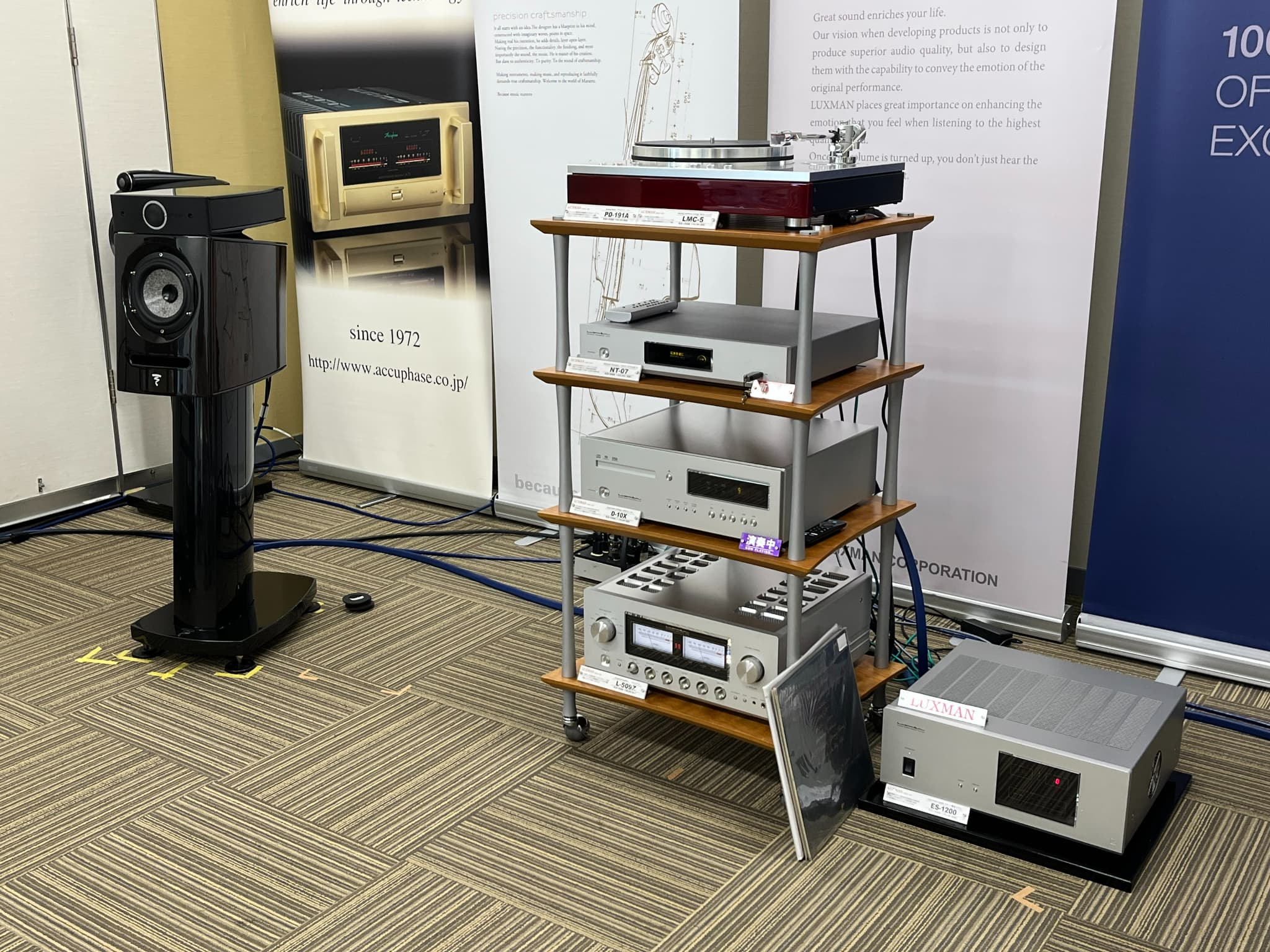 その他、オリジナルトーンアーム搭載のアナログプレーヤー「PD-191A」(カートリッジは「LMC-5」)、最上位モデルのSACDプレーヤー「D-10X」、同社初となったクリーン電源「ES-1200」、最上位プリメインアンプ「509Z」、フランスFOCALのスピーカー「Diablo Utopia」と、錚々たる顔ぶれとなっておりました。