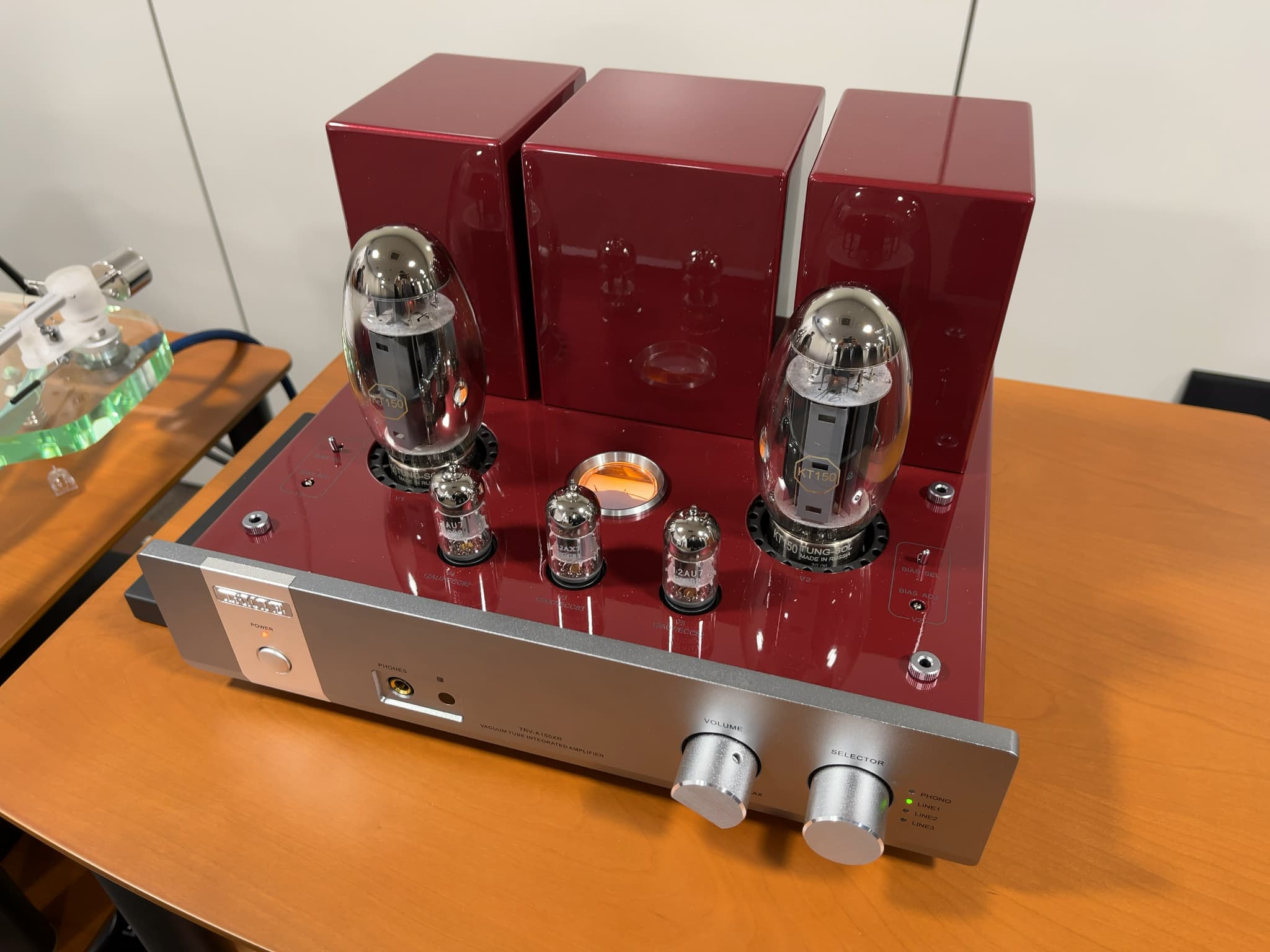 こちらでは、高級パーツを随所に使用したプリメインアンプ『JUNONE845S』や、現代的なフォルムが特徴の真空管プリアンプ『EVOLUTION PRE』、アート作品のような美しさのHi-Fi Roseのプリメインアンプ『RA180』等 を展示。中でも、急遽出展した未発売の新製品真空管プリメインアンプ(写真左)が注目を集めておりました!発売が楽しみですね~