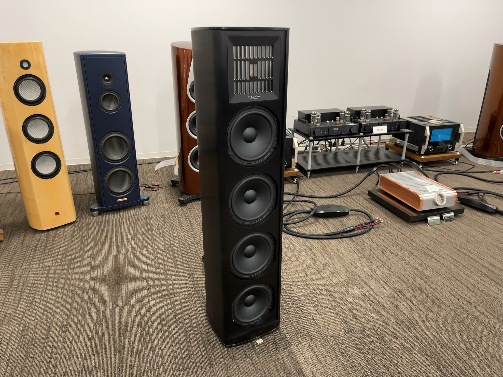こちらも主役はスピーカー!鮮やかで緻密な高音を実現する同軸リボンユニットを使用したPIEGA(ピエガ)の『Coax811』のデモを実施。システムはモノラルパワーアンプ『MRE220』、プリアンプ『HP700SE』、強化電源『Super Black Box』と、Octave(オクターブ)製品で統一しておりました!