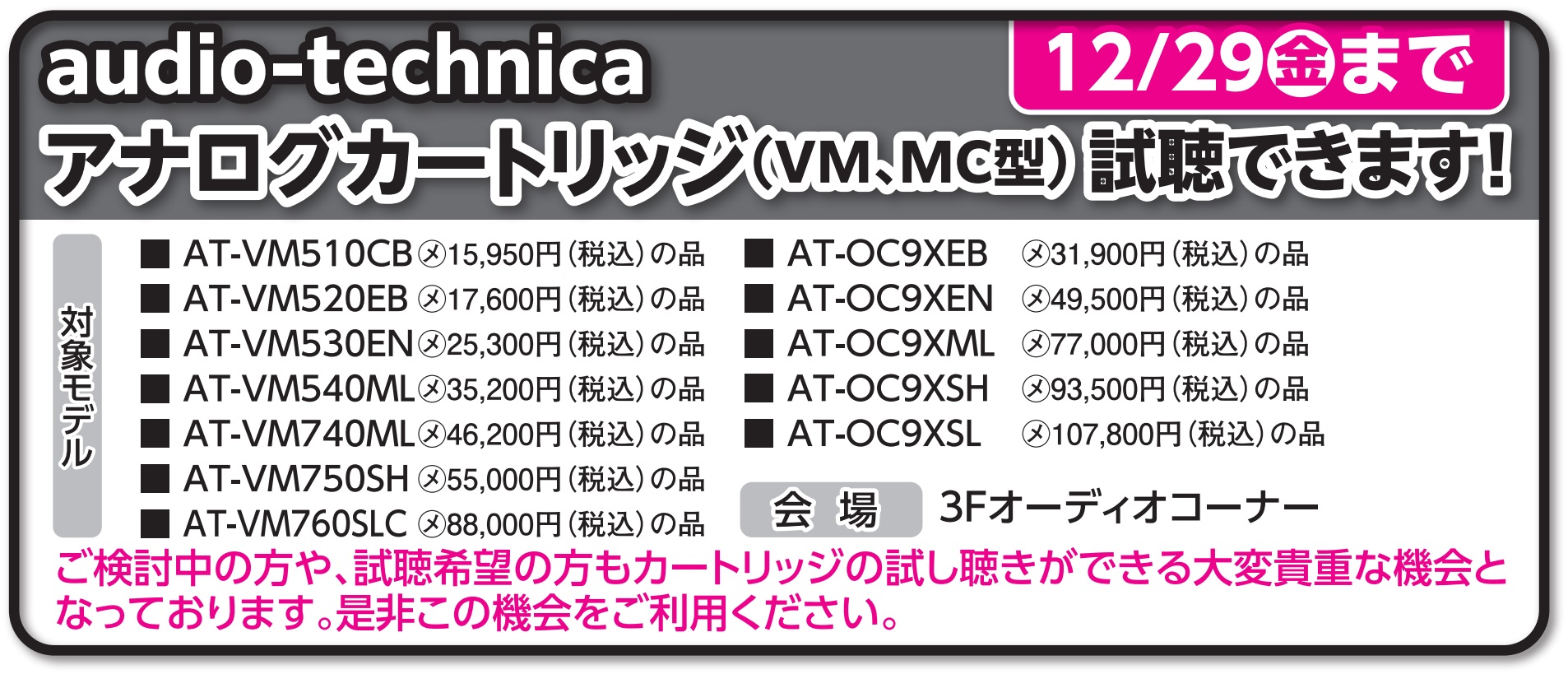 【期間限定】audio-technicaのVM・MC型カートリッジ試聴できます!