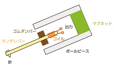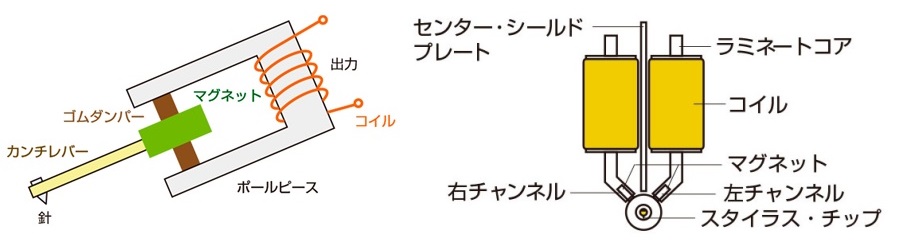 - MC型は、カンチレバーの根元のコイルが動作して発電する「ムービングコイル」を採用。こちらは出力電圧が低く、繊細で情報量の多いサウンドが楽しめます。(※出力電圧が低いため、お手持ちのアンプにMC対応フォノ入力が無い場合は、アナログプレーヤーとアンプの間に「昇圧トランス」を接続するが必要があります。)