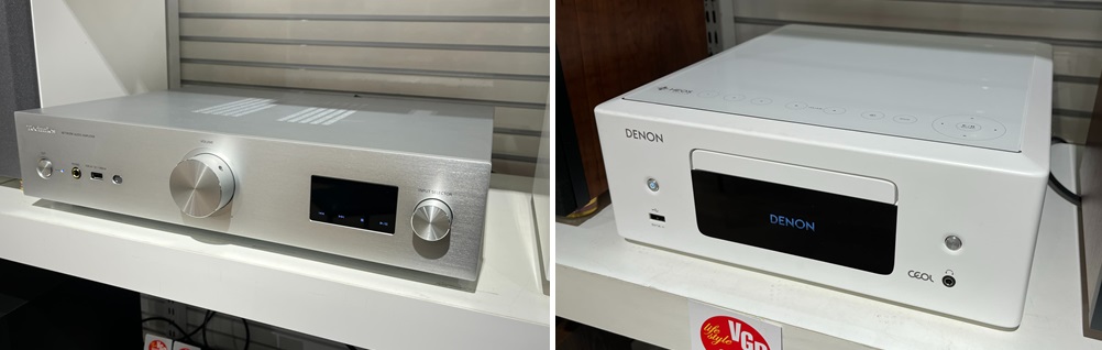 1階コンポコーナーにTechnics(テクニクス)のネットワークオーディオ・アンプ『SU-GX70』(写真左)と、DENON(デノン)のネットワークCDプレーヤー『RCD-N12』(写真右)の新製品2台を展示!