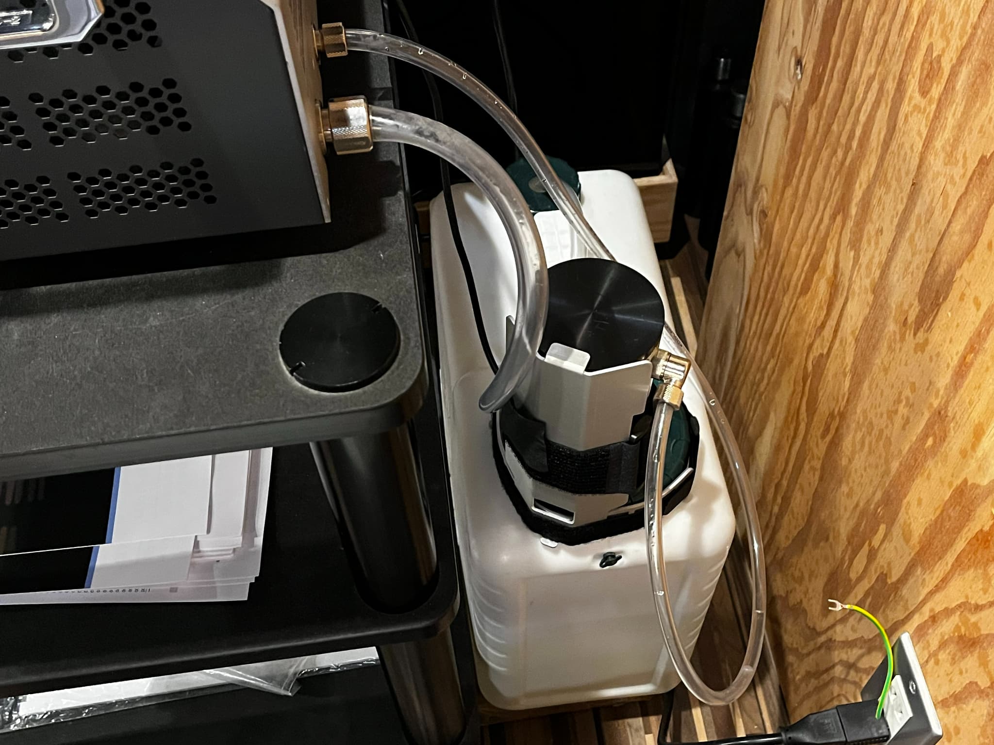 洗浄には「水道水」を使用。超音波で水を振動させてレコードの汚れを落とします。CLN -LP200Sと同様に外部タンクから精製水をポンプで汲み上げて使用します。