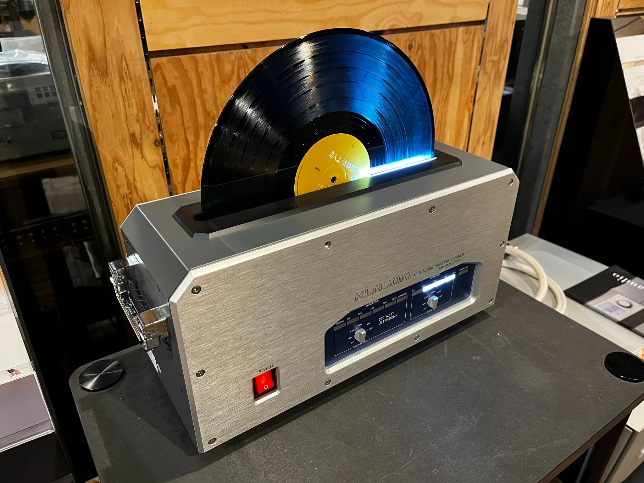 KLAUDiO(クラウディオ)の超音波振動式オートマチック・レコードクリーナー『CLN-LP200T』(定価:1,243,000円/税込)4階試聴室に展示中!!