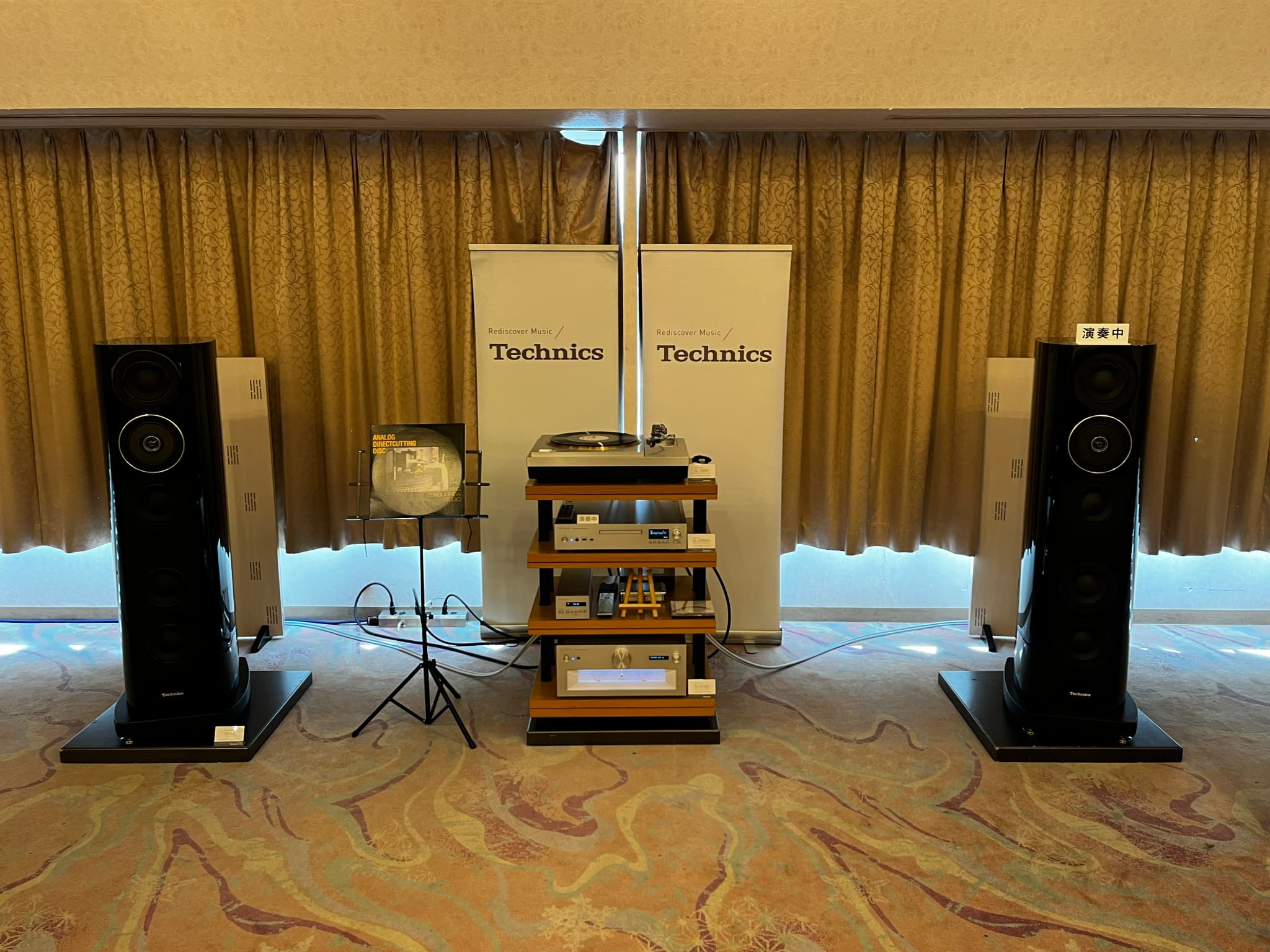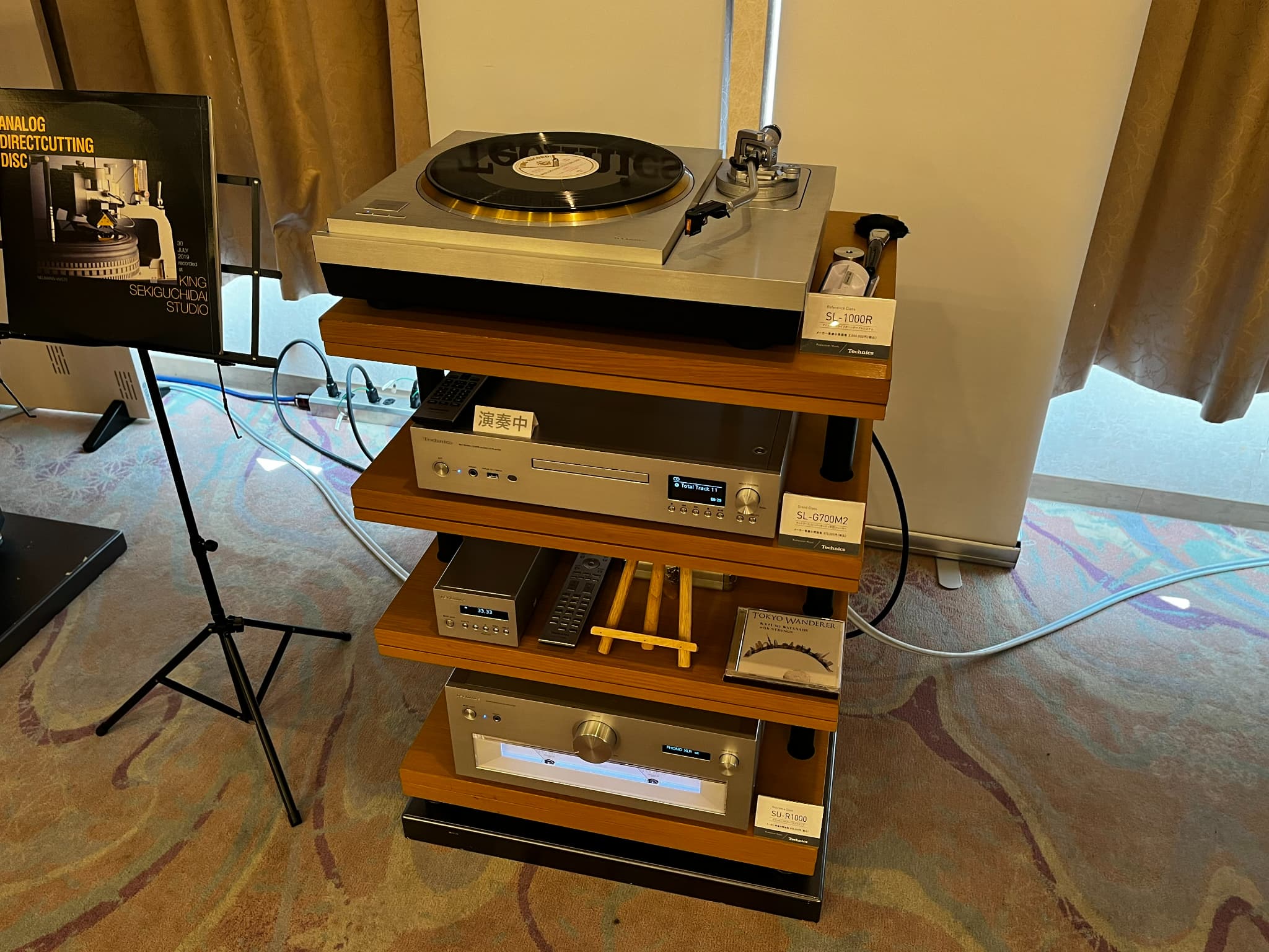 同ブランドのフラッグシップモデル・アナログプレーヤー『SL-1000R』をはじめとするシステムを展示。スピーカーは『SB-R1』。試聴会ではSL-1000Rをメインとしてレコード再生を実施。その他、ネットワーク/SACDプレーヤ-『SL-G700M2』でのSACD再生も行われました。