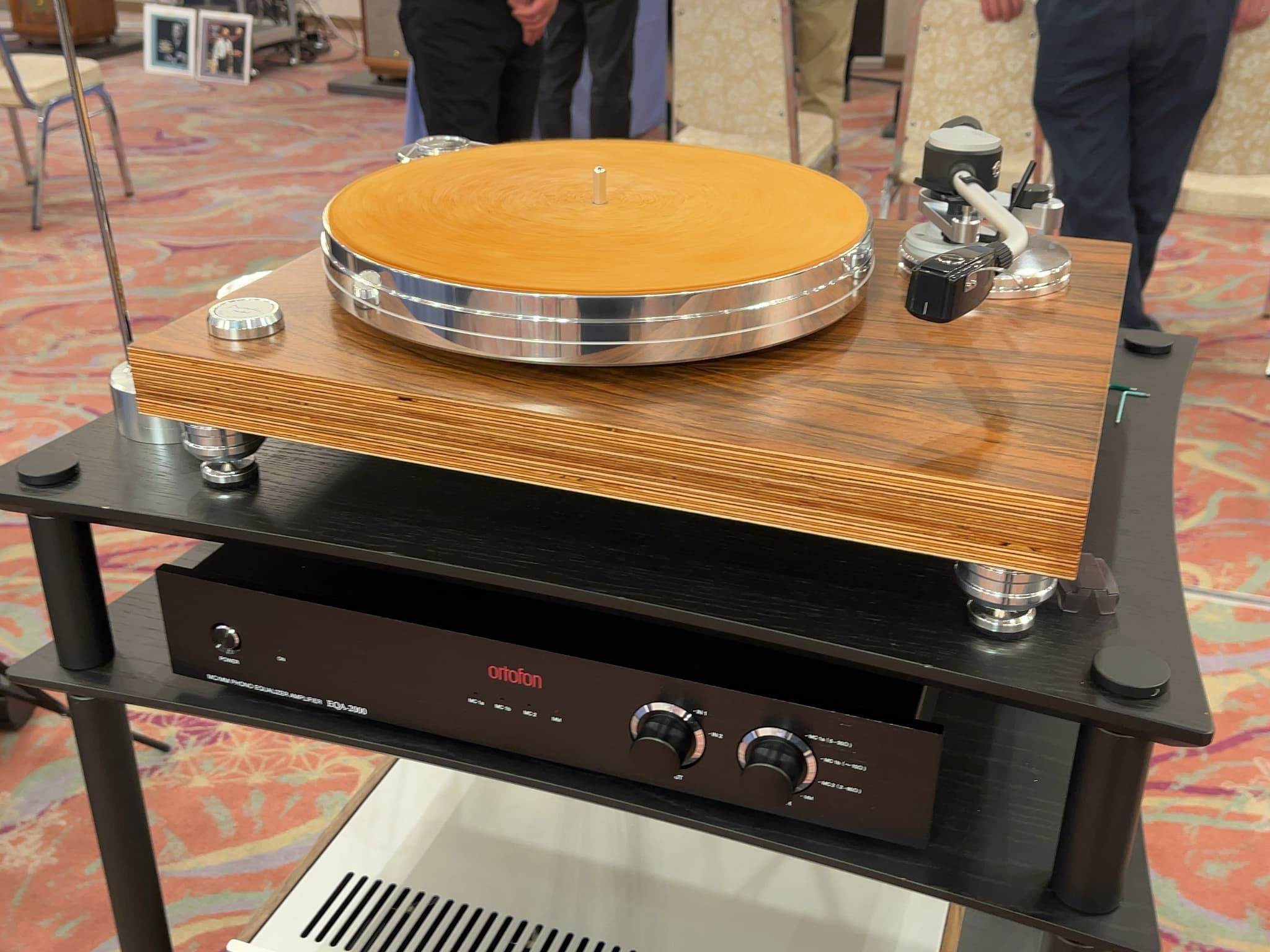 フラッグシップモデルのカートリッジ『MC Diamond』と、SPUカートリッジの内部にトランスを内蔵した新モデル『SPU GTE105』を展示。試聴会ではデモも行われました。その他、同社が扱うスタビライザー『Record stabilizer』や、将来取り扱い予定の海外ブランドのレコードクリーナー等がございました。