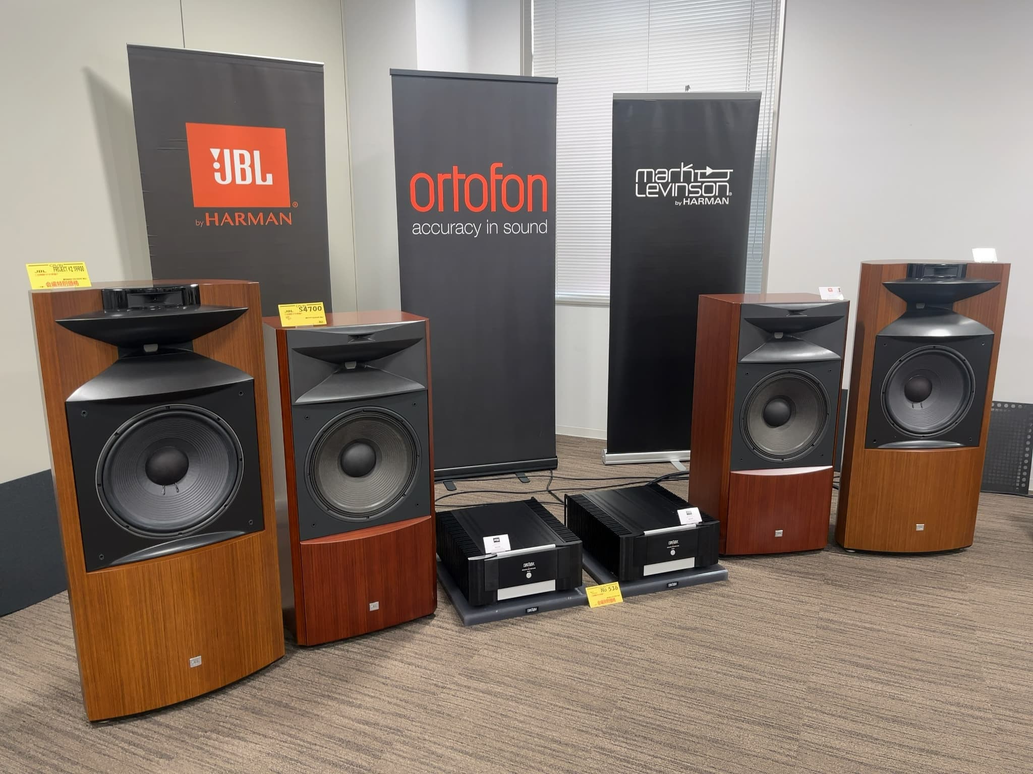 こちらのブースの注目商品は38cmウーハー搭載のJBL(ジェービーエル)フロア型スピーカー『K2 S9900』。試聴会ではその迫力あるサウンドを堪能できました。その他、フロア型スピーカー『S4700』や、Mark Levinson(マークレビンソン)で構成されたシステムを展示。画像には写っていませんが、レトロな外観が魅力の『JBLクラシックシリーズ』のシステムもございました。