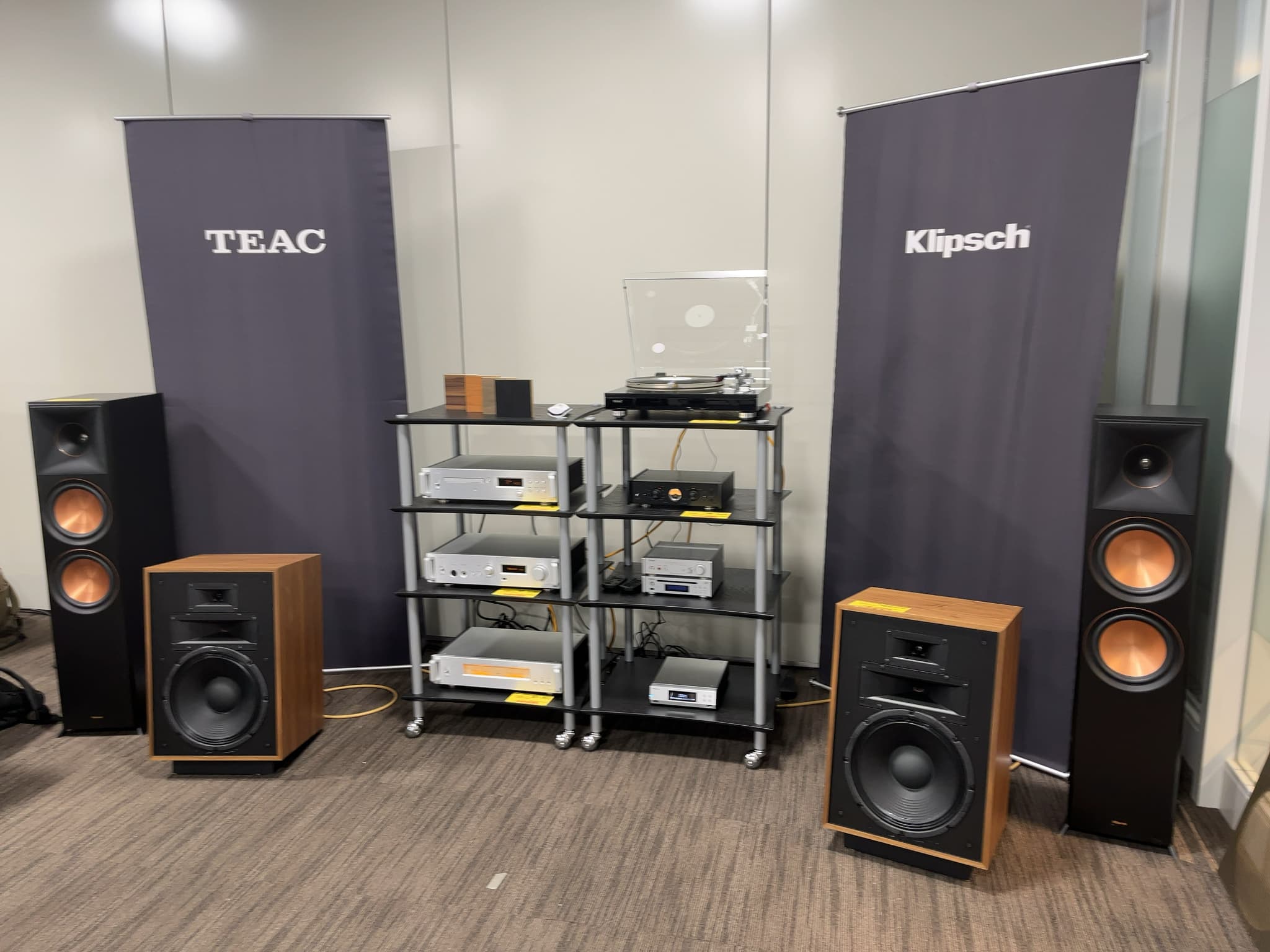 こちらのブースでは『HERESY Ⅳ』『RP-8000F II』といったKlipsch(クリプシュ)のスピーカーを試聴するお客様が多く見受けられました。システムはコンパクトさが魅力のTEAC製品で構成されておりました。