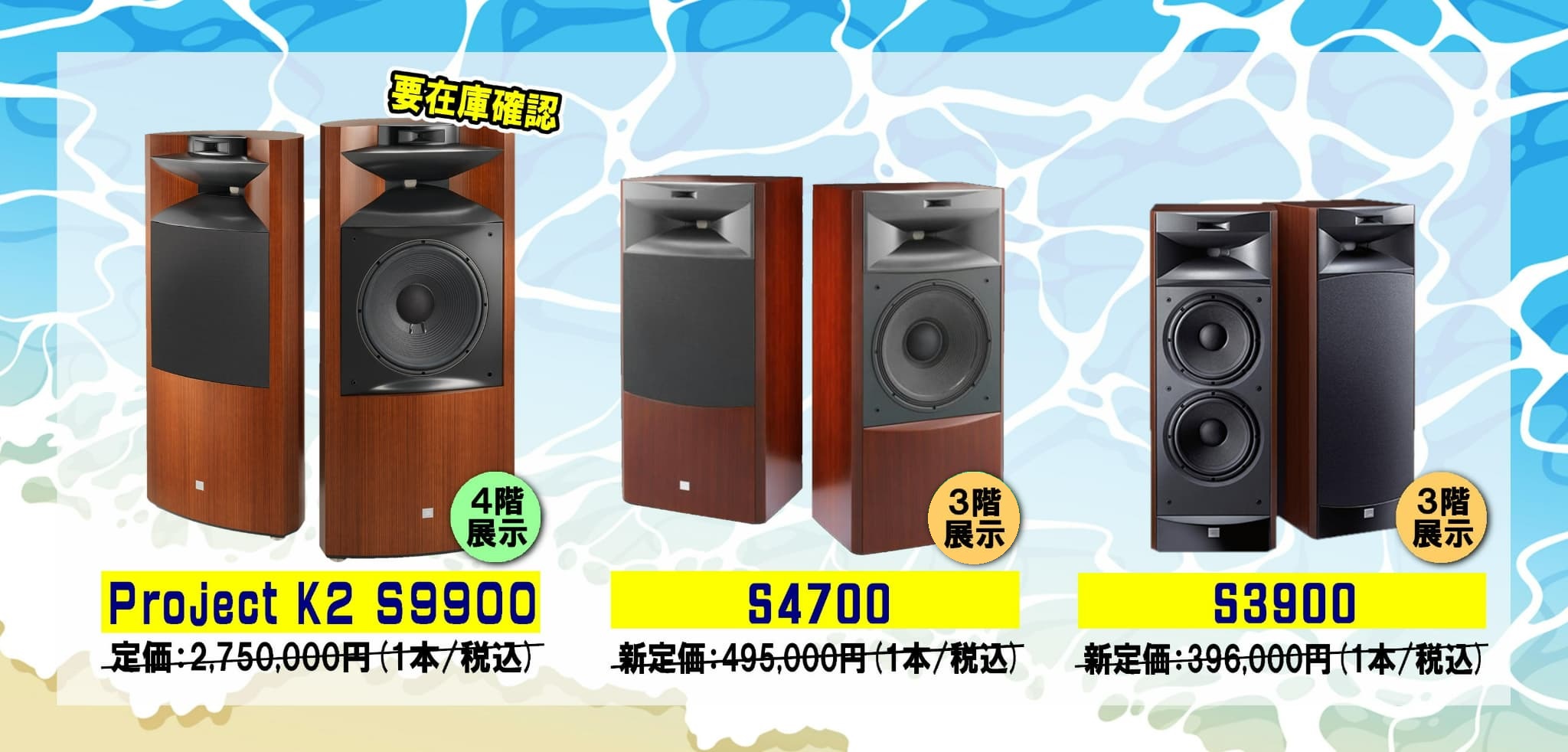 期間限定で、JBLのスピーカー『Project K2 S9900』『S4700』『S3900』の3機種を特別価格にてご提供いたします!!