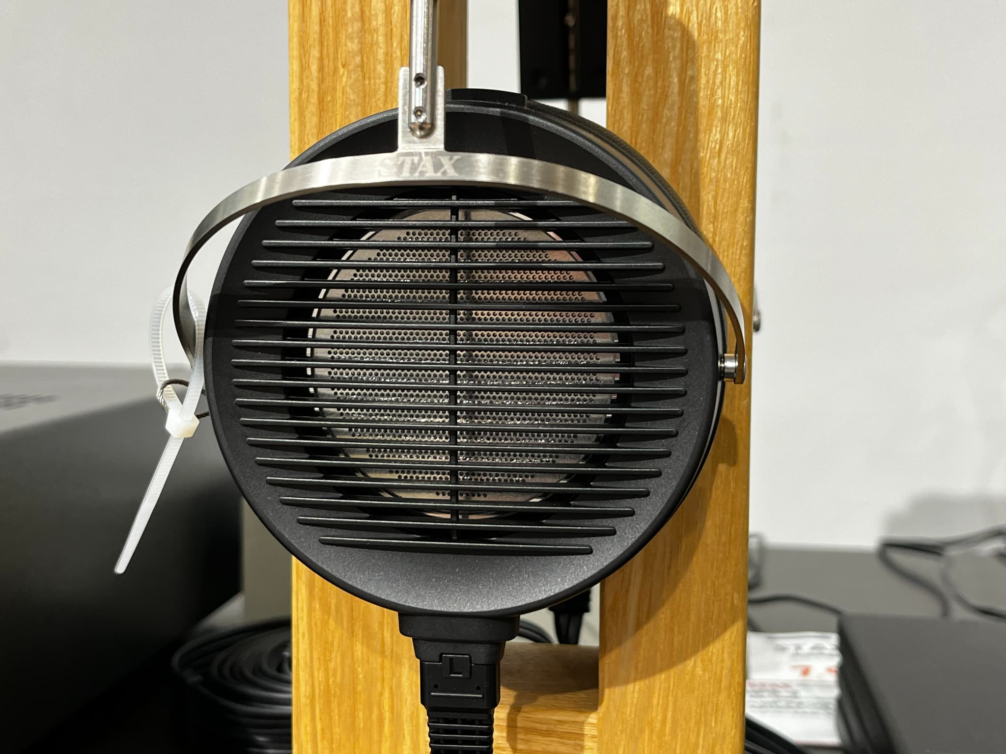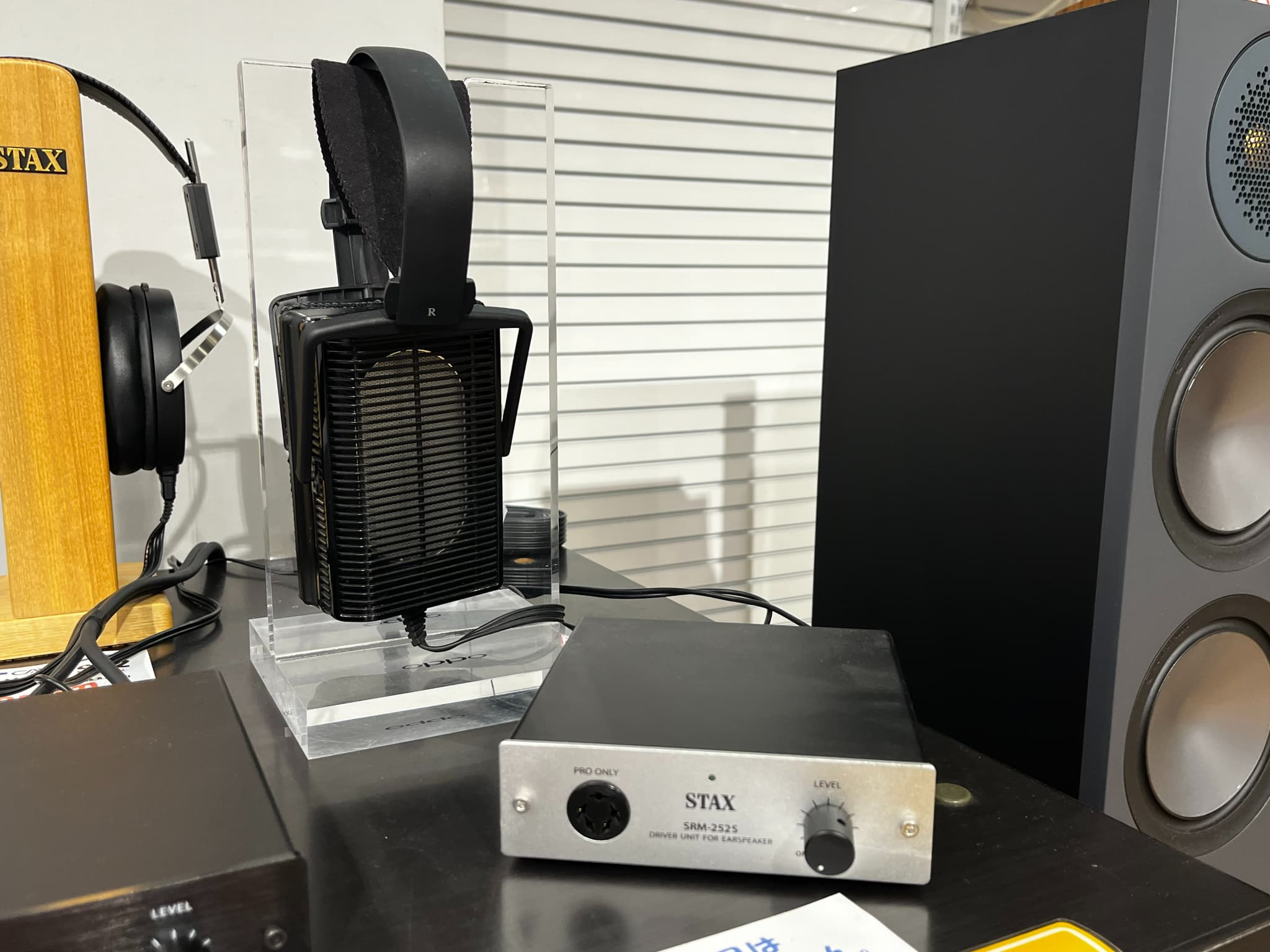 1階にSTAX(スタックス)の新エントリーシリーズ『SRS-X1000』(SR-X1(ヘッドホン)+SRM-270S(ドライバー・ユニット))を展示中。