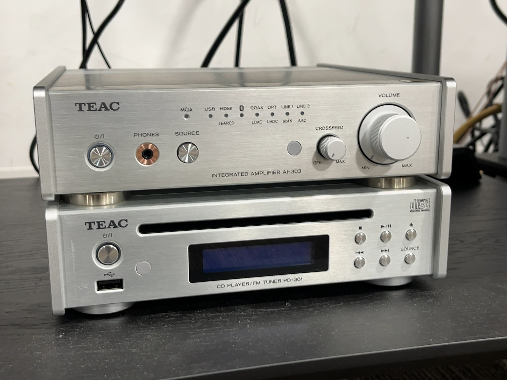 TEAC(ティアック)は、同社の機材で構成されたシステムにKlipsch(クリプシュ)のスピーカー『HERESY4』『RP-8000F-2』という展示となっておりました。注目商品は、HDMI端子を備えるUSB-DAC機能搭載プリメインアンプ『AI-303』と、ワイドFMチューナー搭載のCDプレーヤー『PD-301-X』。これだけコンパクトなのに多機能とは非常に驚きです!