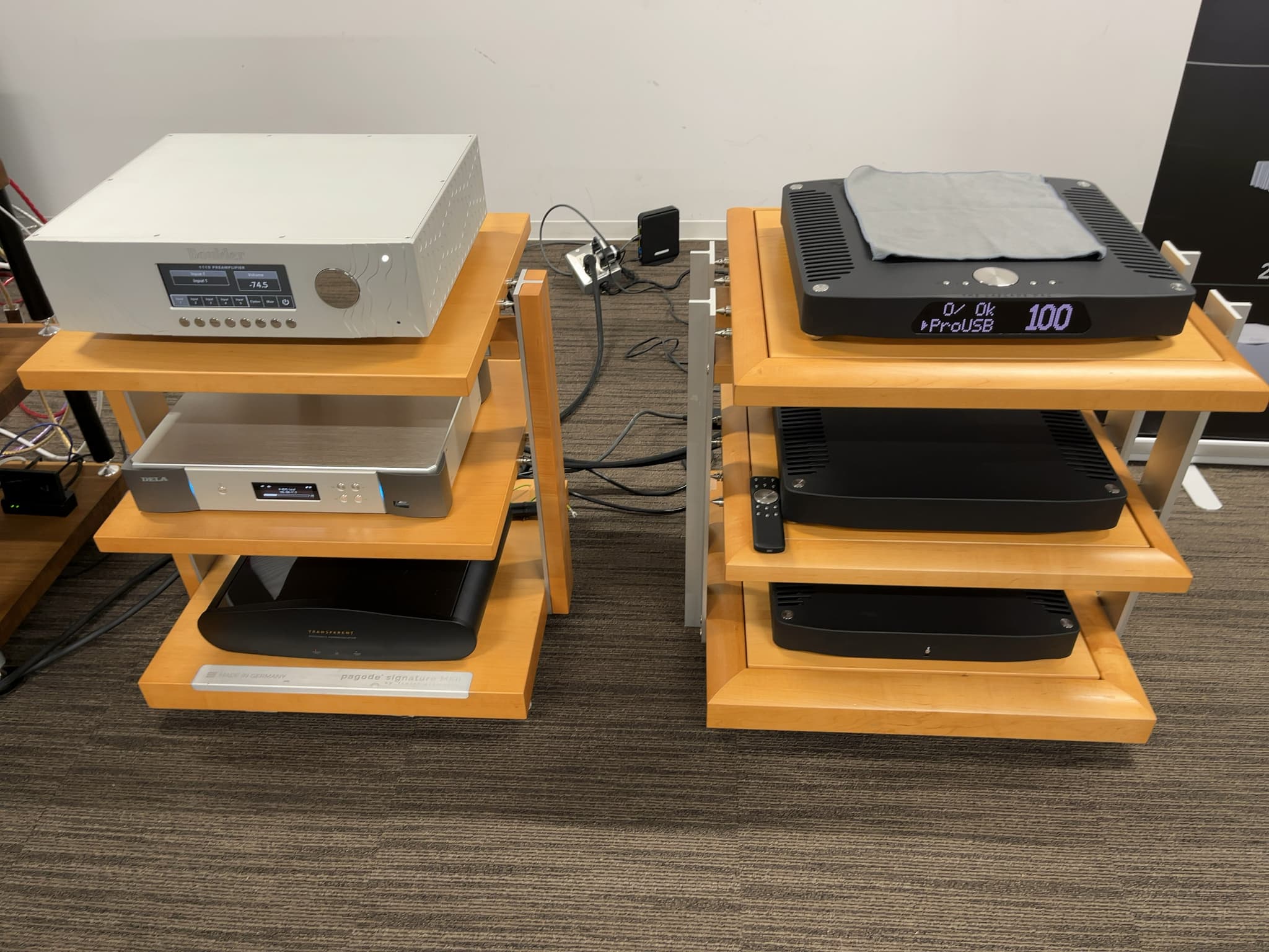こちらの注目商品は、今年9月から取り扱いを開始したZELLATON(ゼラトン)のフロア型スピーカー『PLURAL EVO』とMSB(エムエスビー)のD/Aコンバーター『Cascade DAC』の新製品2機種。共に北海道初上陸とのこと!その他、Boulder(ボルダー)製品や、TRANSPARENT(トランスペアレント)のアクセサリー、finite elemente(フィニッテ エレメンテ)のラック等が使用されておりました!