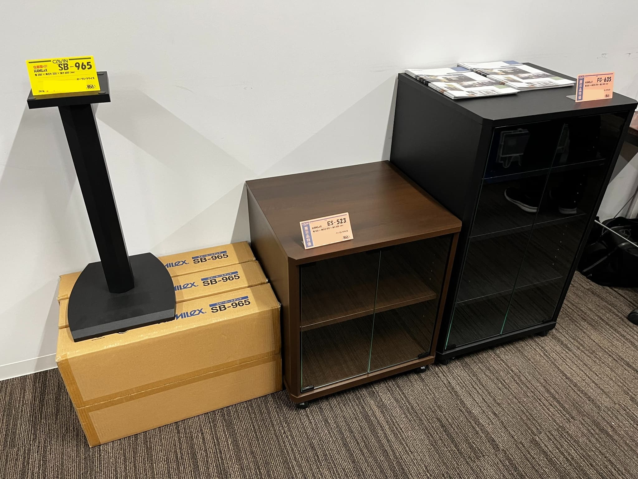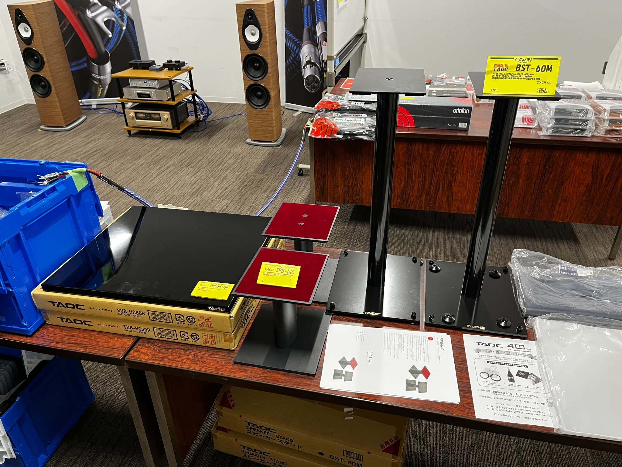 注目商品はTAOC40周年記念モデルのスピーカースタンド『SPB-NIC』と、オーディオボード『SUB-HC50R』。その他、HAMILeXのオーディオラックが展示品特価にて販売されていました。