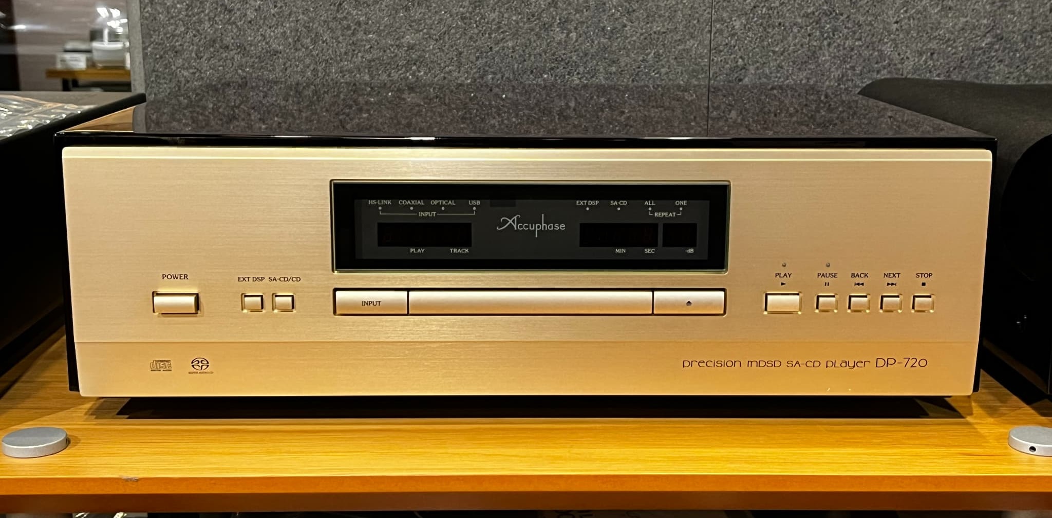 SACD/CDプレーヤー。高級感のあるウッドケースを採用。背面にはPCオーディオが楽しめるUSB-B端子を装備。