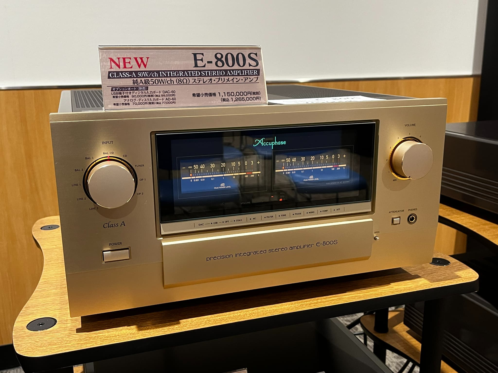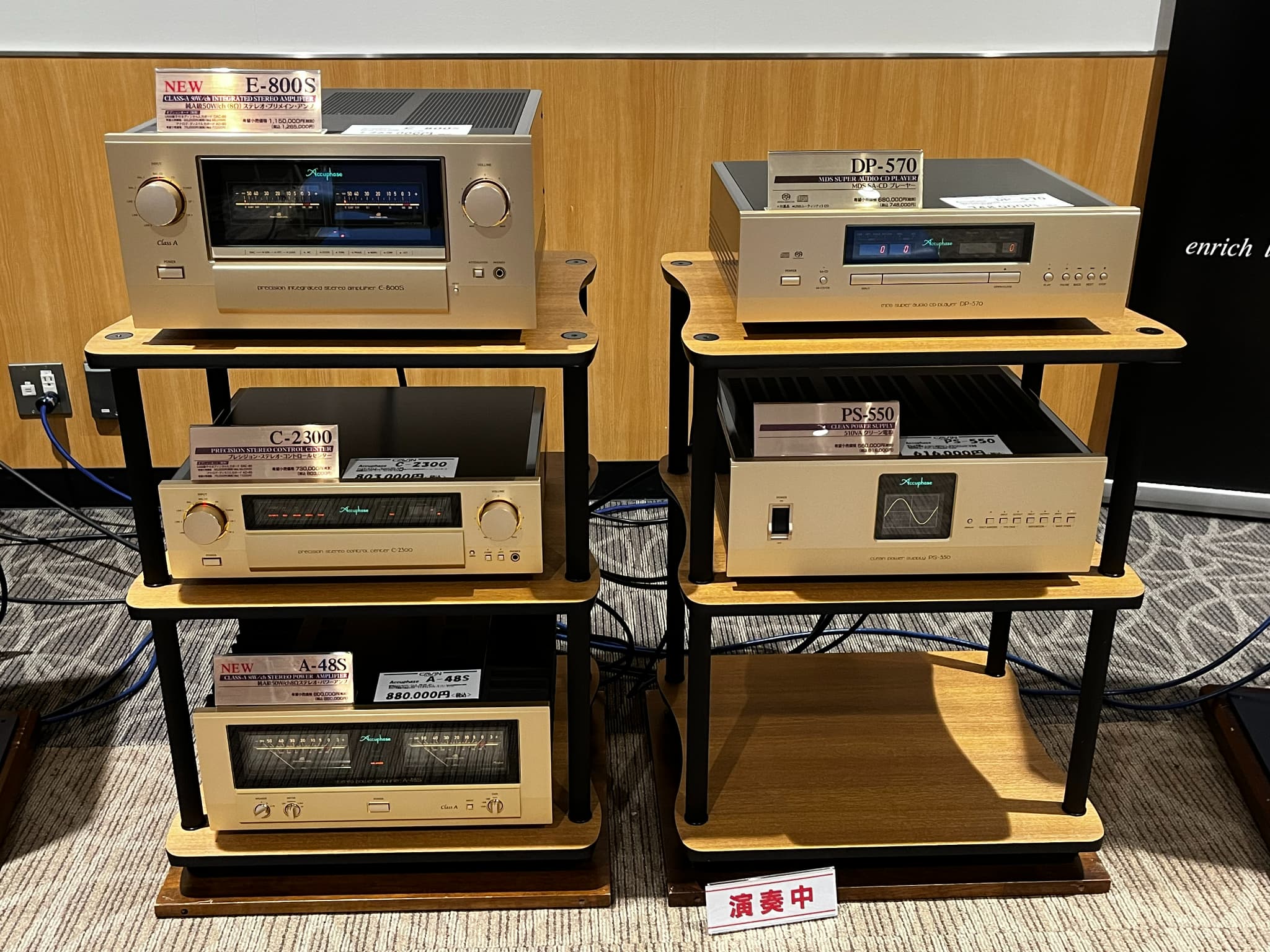 Accuphase(アキュフェーズ)は最上位モデルの新A級プリメインアンプ『E-800S』をメインとしたシステムを展示。試聴会ではSACD/CDプレーヤー『DP-570』でSACDの試聴を行いました。他にも、クリーン電源『PS-550』等が展示されており、音質の変化を体験できました。