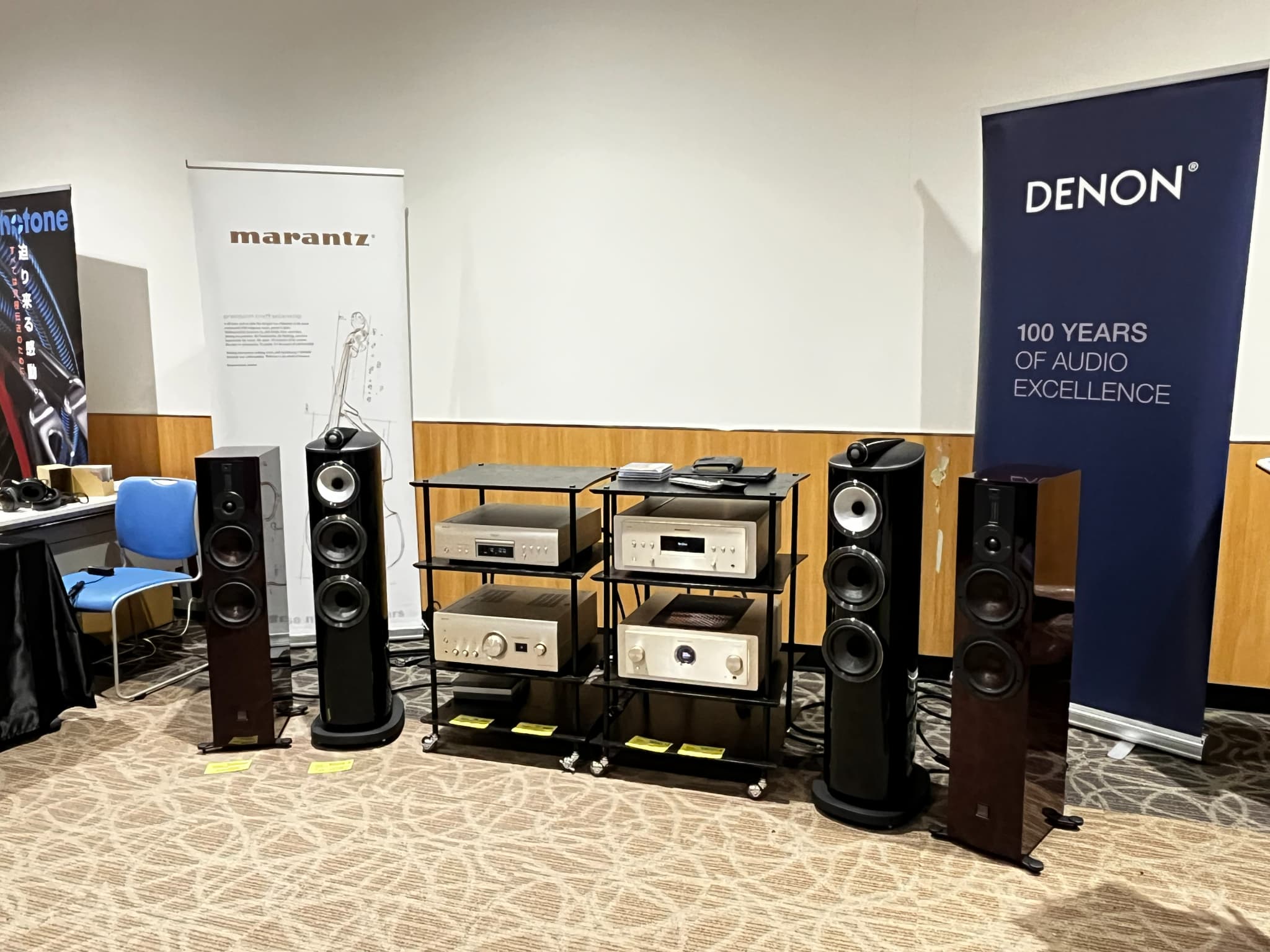 こちらでは国内ブランドのDENON(デノン)、marantz(マランツ)製品を中心としたシステムを展示。DENONの『3000シリーズ』、marantzの『10シリーズ』を比較試聴できました。その他にもDALI(ダリ)、B&W(ビーアンドダブル)といった海外ブランドのスピーカーもございました。