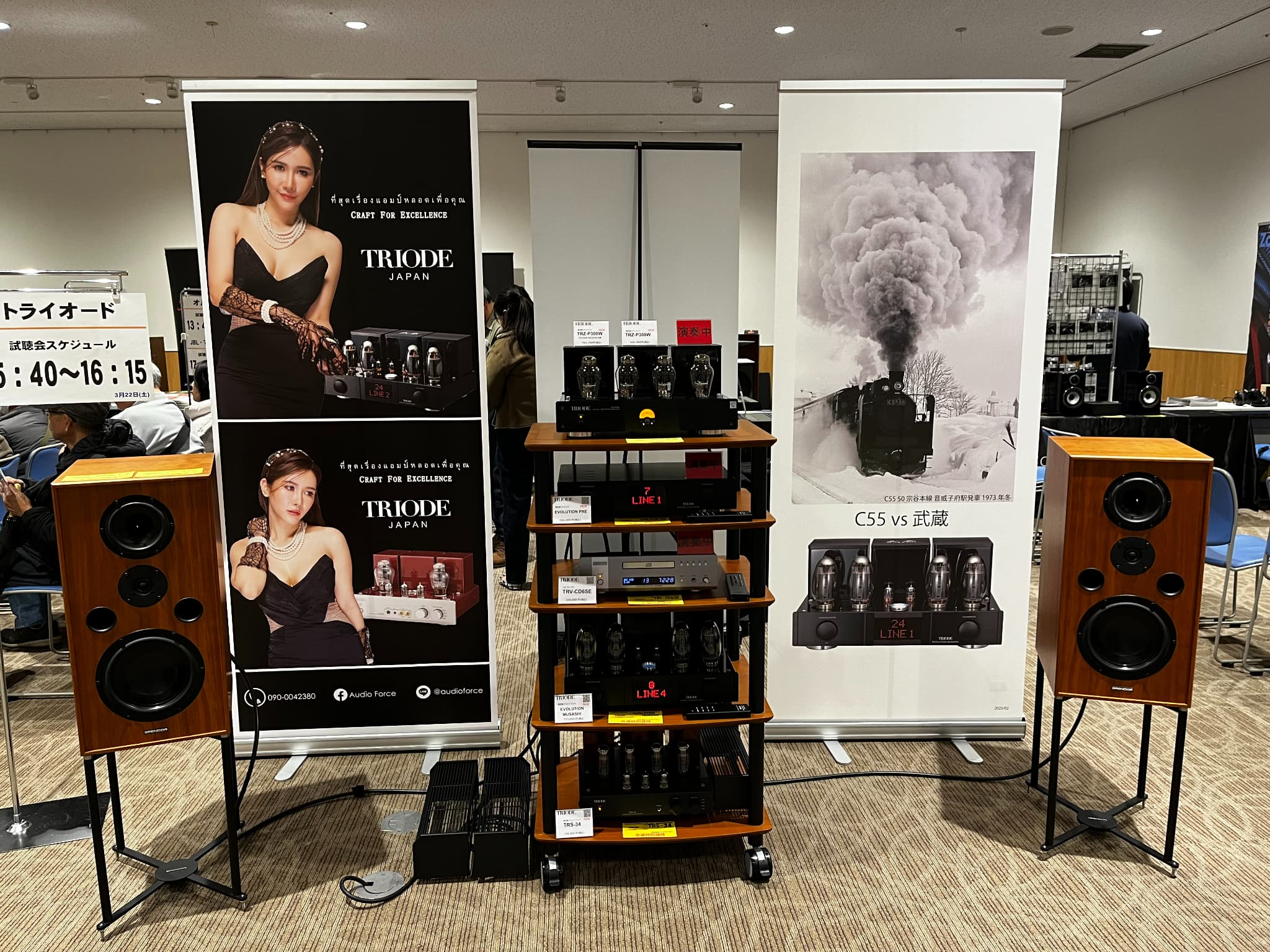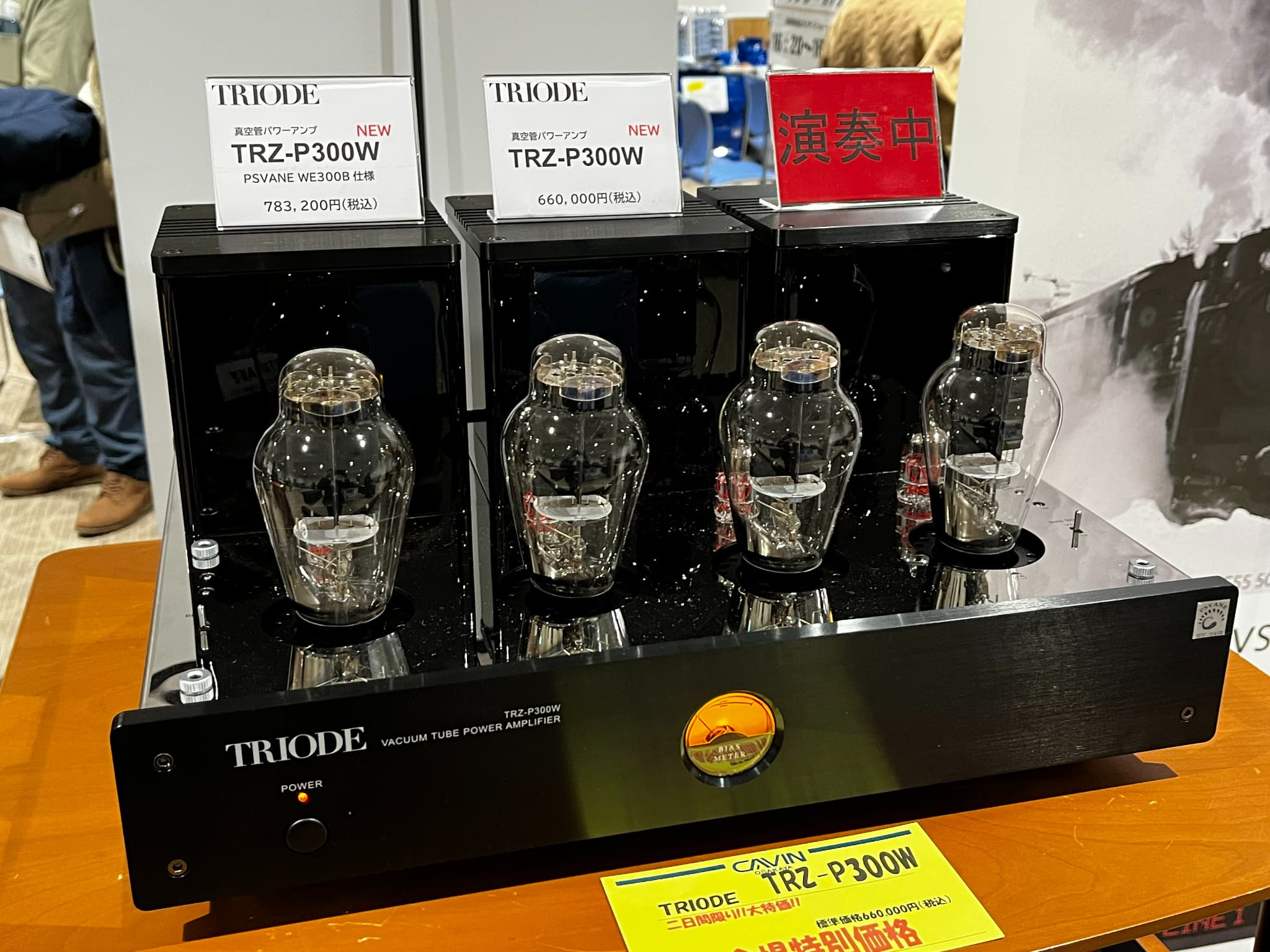 こちらは300B真空管を使用した新パワーアンプ『TRZ-P300W』をメインとしたシステムを展示。他にもKT150真空管を使用したプリメインアンプ『EVOLUTION MUSASHI』など、話題の商品も並んでおりました。スピーカーは同社が扱うSPENDOR(スペンドール)『Classic 1/2』を使用。