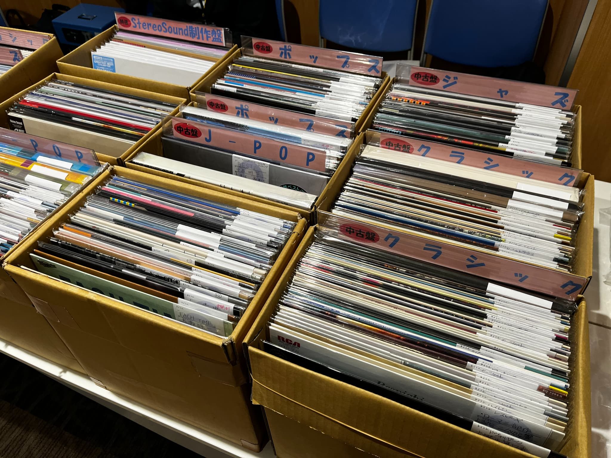 特価品コーナーでは、お買得なアクセサリーやアンプ、SACD/CDプレーヤーなどを販売。ソフトコーナーでは、中古LPやCD、書籍を販売。特に中古LPは大人気で、一枚一枚じっくりと選ぶお客様が多くいらっしゃいました。