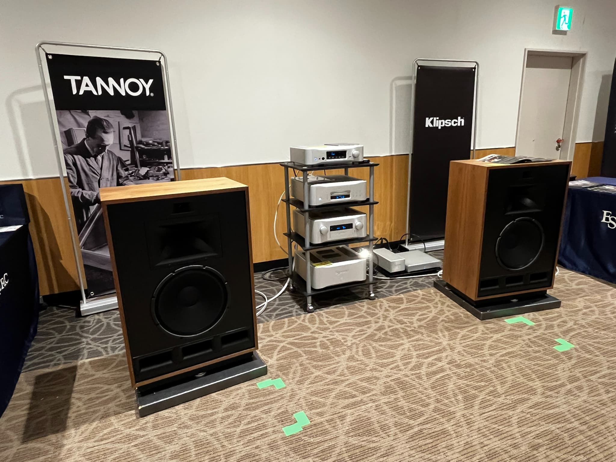 こちらではESOTERIC(エソテリック)システムを使ったTANNOY(タンノイ)、Klipsch製ホーン・スピーカーのデモを実施。TANNOYは新製品の『SGM10』、Klipschは38.1cmウーハーを搭載した『Cornwall lV』を使用。SACD再生や、Qobuzでのストリーミング再生を行いました。