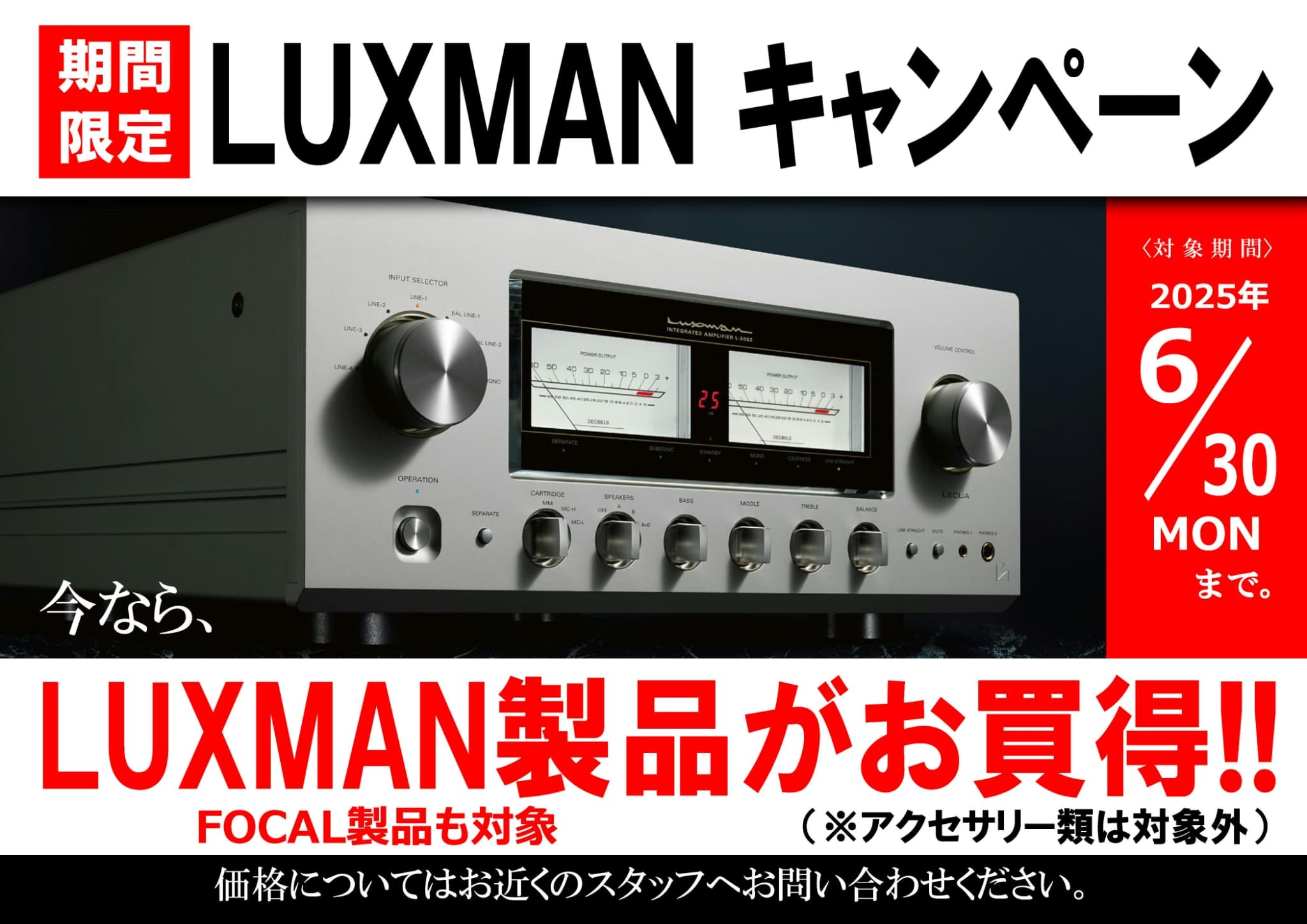 お店に展示してないLUXMAN、FOCAL製品もキャンペーン対象になります。詳しくはお問い合わせください!!