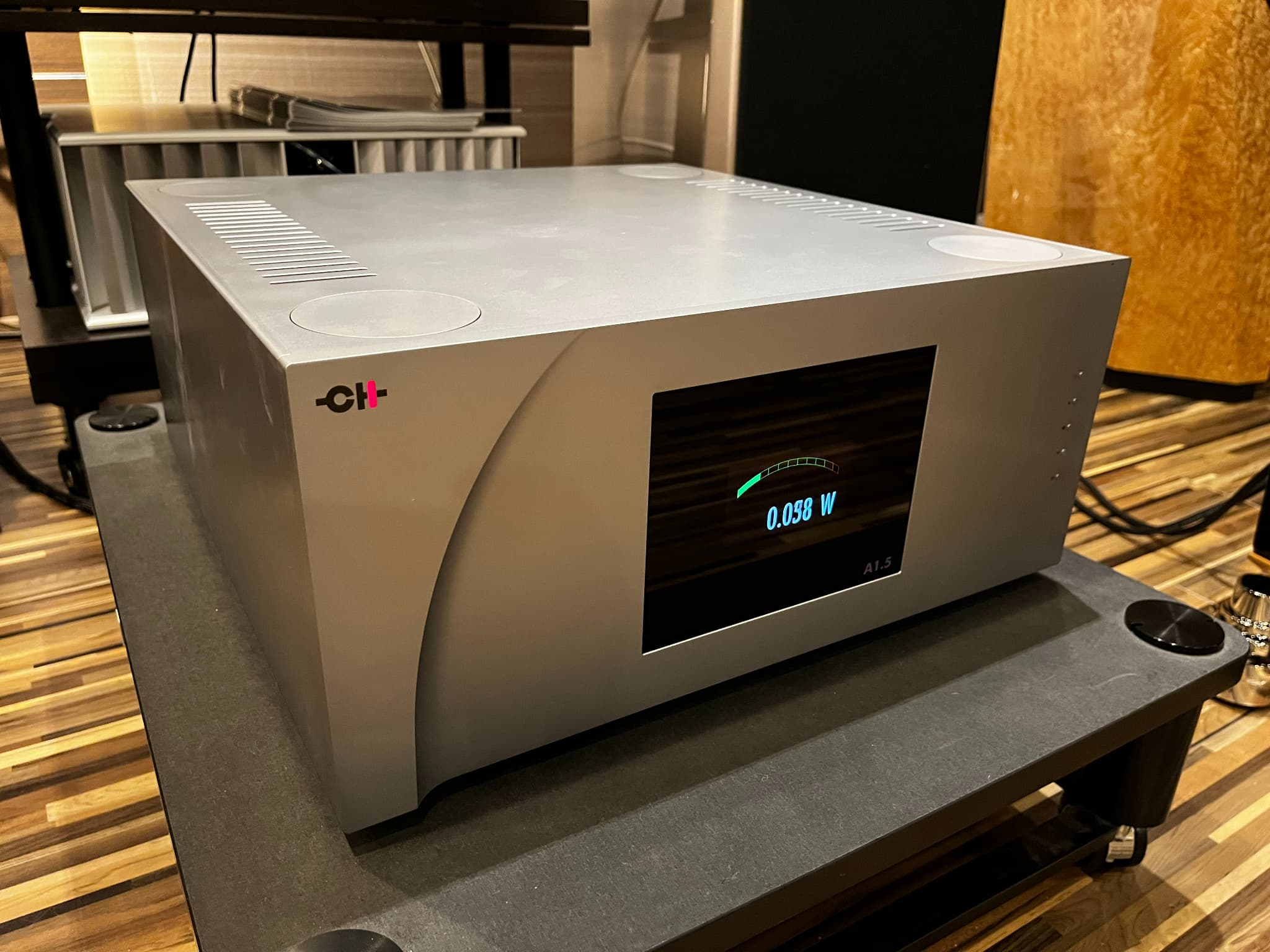4階試聴室のシステムにCH Precision(シーエイチプレシジョン)のプリアンプ『L1』、ステレオパワーアンプ『A1.5』と、MARTEN(マーテン)のフロア型スピーカー『MINGUS QUINTET 2 Statement Edition』を追加導入しました。