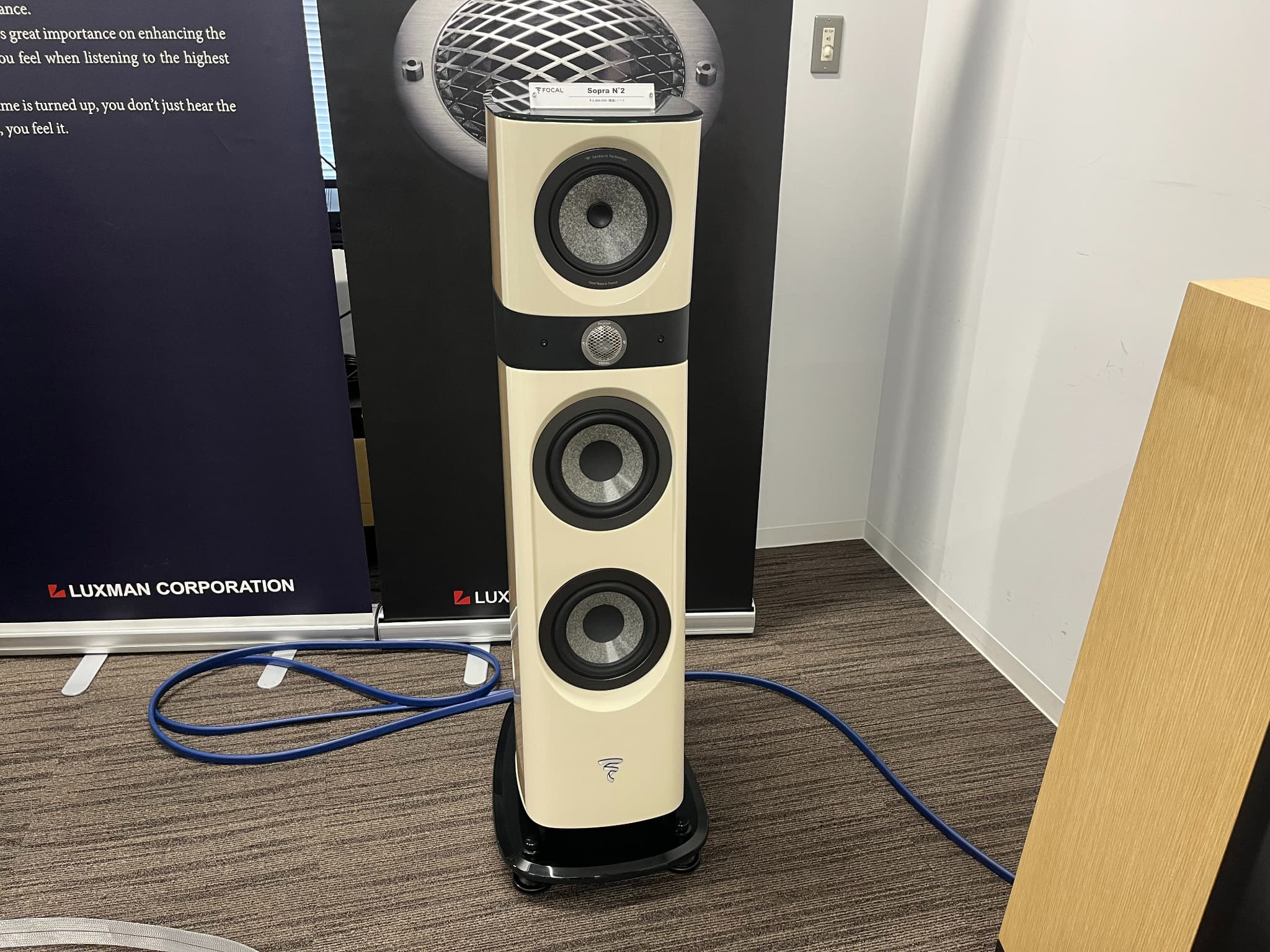 LUXMAN(ラックスマン)ブースでは、注目商品としてLUXMAN創業100周年記念モデルの純A級プリメインアンプ『L-100 CENTENNIAL』と、11月発売予定のCD/SACDプレーヤー『D-100 CENTENNIAL』を展示。同社が取り扱うFOCAL(フォーカル)のスピーカー『Sopra No2』との組み合わせで試聴が出来ました。