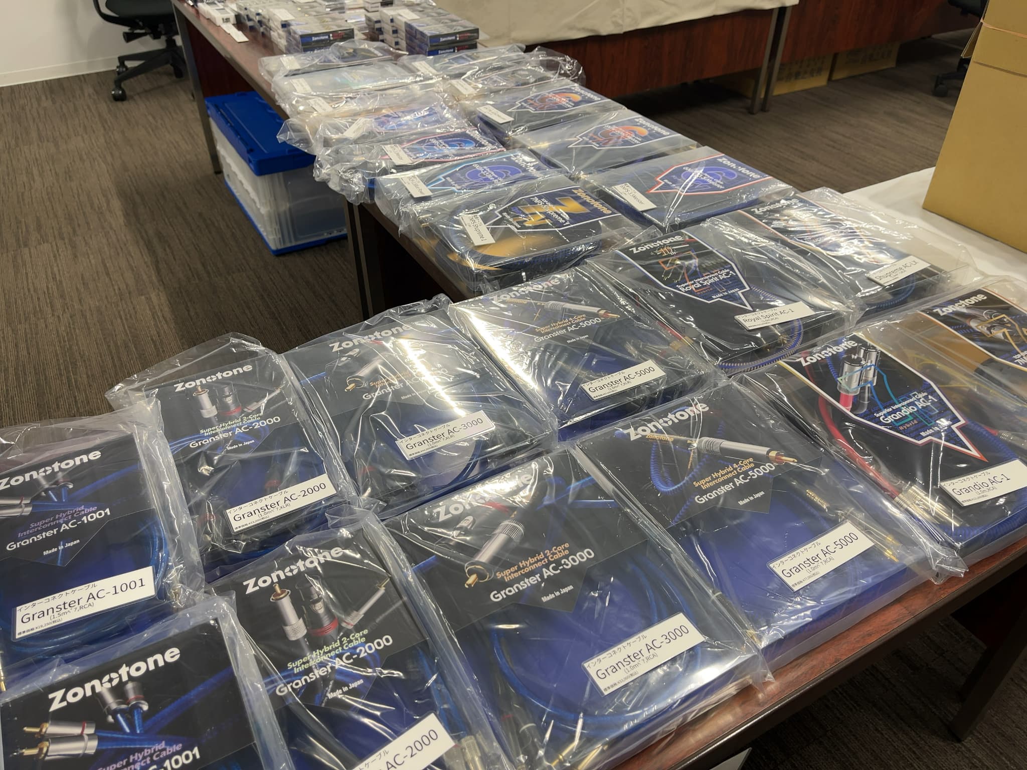 こちらのブースでは同社のブランド“ZONOTONE(ゾノトーン)”製品を多数販売。イベントでしか販売しないお買得ケーブルもありました。試聴コーナーでは新製品やフラッグシップモデルのスピーカーケーブル、電源ケーブル、オーディオケーブル等を比較試聴できました。実際に聴いてみると音質の違いがよく分かるので、やはりアクセサリーは実際に聴いてみるのが一番だと感じますね。