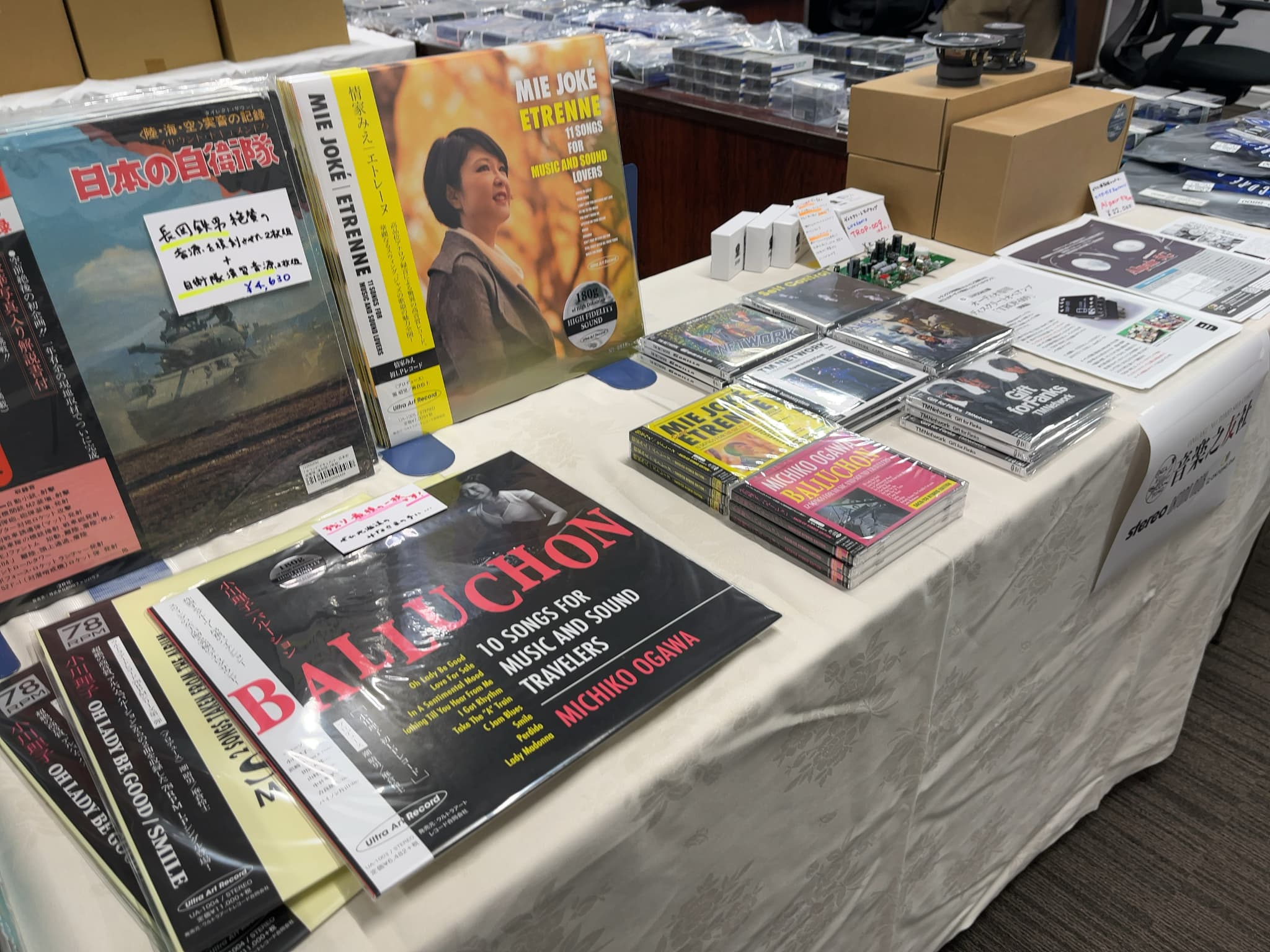 当店スタッフが厳選したCD/SACD、レコードを販売。人気の高音質SACDや、新品・中古のレコードが並んでおりました。JAZZ、クラシックだけではなく、「YMO」「大瀧詠一」などの人気アーティストのソフトもございました。