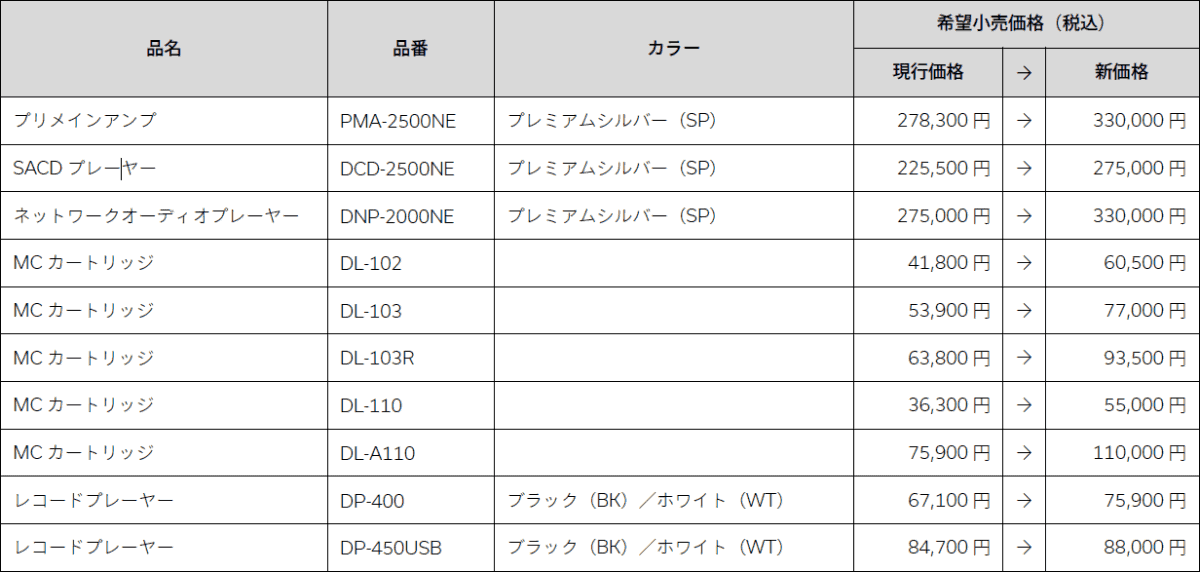 シリーズ」、ネットワークオーディオプレーヤー「DNP-2000NE」、レコードプレーヤー「400シリーズ」、レコードプレーヤー用交換針が