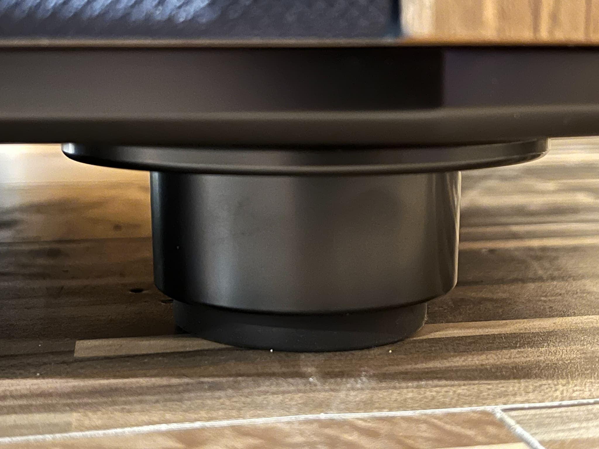 その他、キャビネットは前モデルよりも高さが増し、コンプレッションドライバーがリスナーの耳の高さと一致するようにデザインされています。底部にはフラグシップライン “JBL SUMMITシリーズ” と共通のIsoAcoustics社製「アイソレーションフィート」を装備、などなど、進化した点が多く見られました。