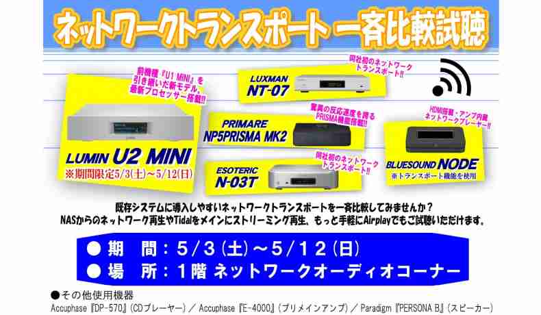 初級からハイエンドオーディオ機器、オーディオアクセサリー、中古品を中心に当店イチオシの商品を随時ご紹介しています。