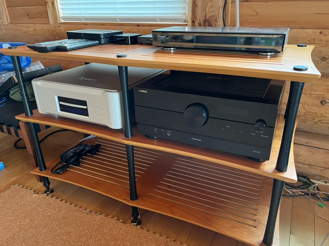 これまでピュアオーディオ/シアターシステムと使い分けて環境を作っていましたが、お子様の誕生から暫く遠ざかり、2022年よりホームシアターから少しずつ復活。機器の故障がきっかけとなり、入れ替えが進んでいます。今回はYAMAHAのパワーアンプ・プリアンプのセパレートシステムから、それに匹敵する実力を持つ『RX-A8A』へと替えて頂きました。