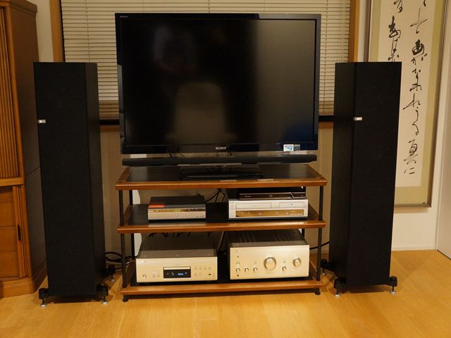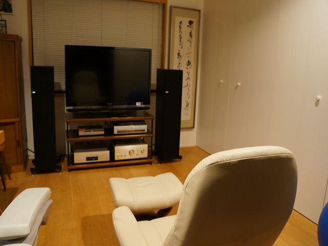 スピーカーやアンプの寸法等を計算し、何度か当店に足をお運びいただき、エコーネス、ストレスレスチェアやラック等、一式ご購入頂きました。