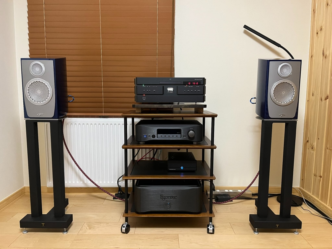 設置後は、ESOTERIC・SOULNOTE製品で構成されたシステムでSpotifyやパソコン内のデジタル音源とCD・SACDを試聴。以前お使いのスピーカーとは音の雰囲気がガラリと変わった為、大変満足されていらっしゃいました!