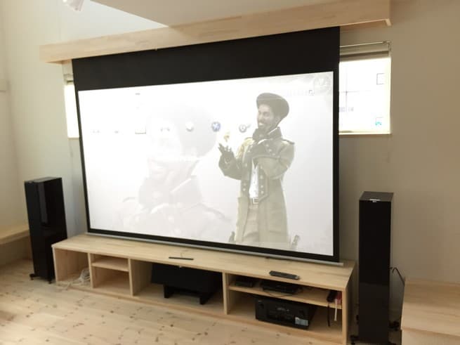 新築にてリビングにOPTOMA DLPプロジェクターHD25LV、OS 120インチスクリーン KEFのRシリーズを使った5chシステムを導入致しました。