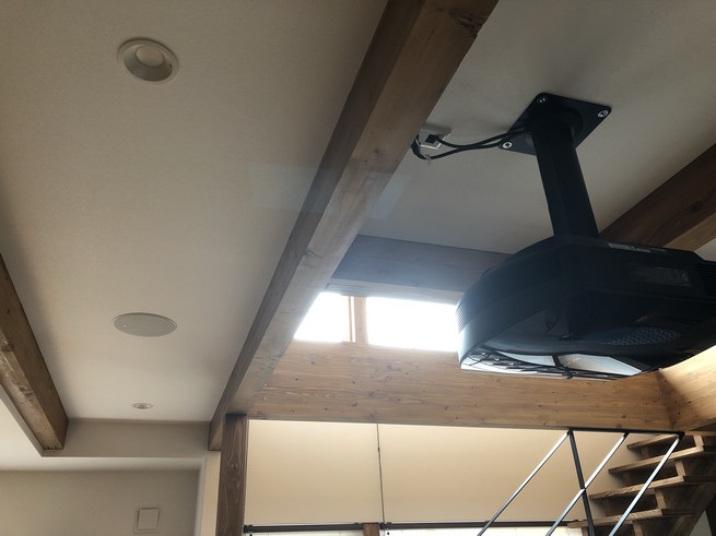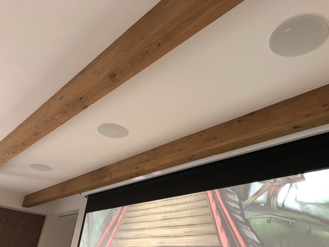 新築に合わせて120インチスクリーン、スピーカーは埋め込みで5.1chシステム を導入して頂きました!