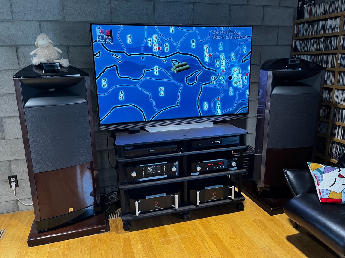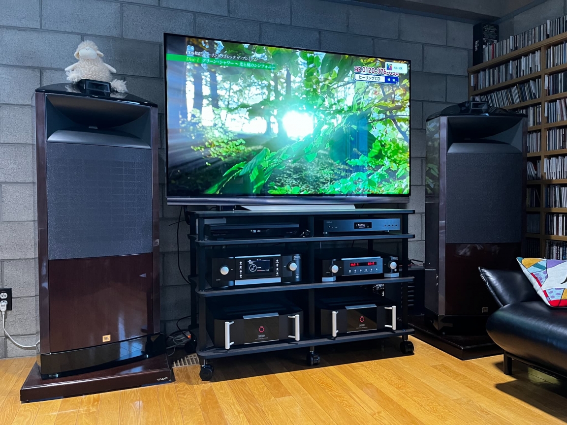 フルバランス接続はもちろん、パワーアンプは贅沢にブリッジ接続を行い、JBL K2 9800の音色に余裕を感じることができます。ネットワークオーディオでも楽しめ、CDでも楽しめる至極のシステムの完成です。
