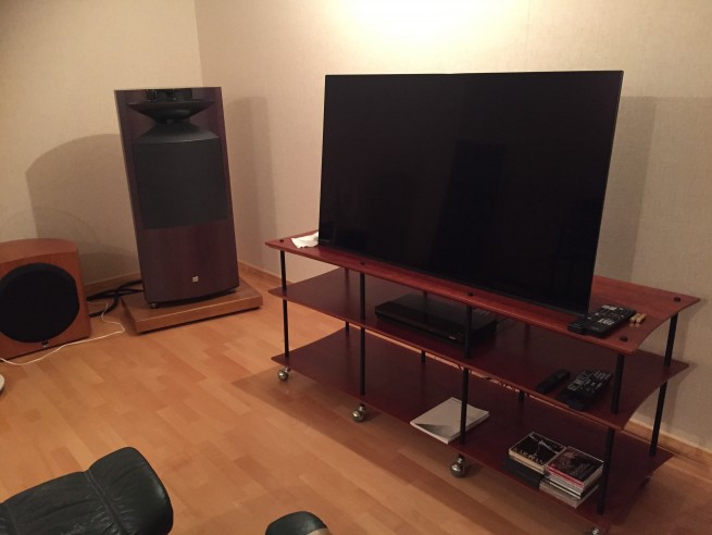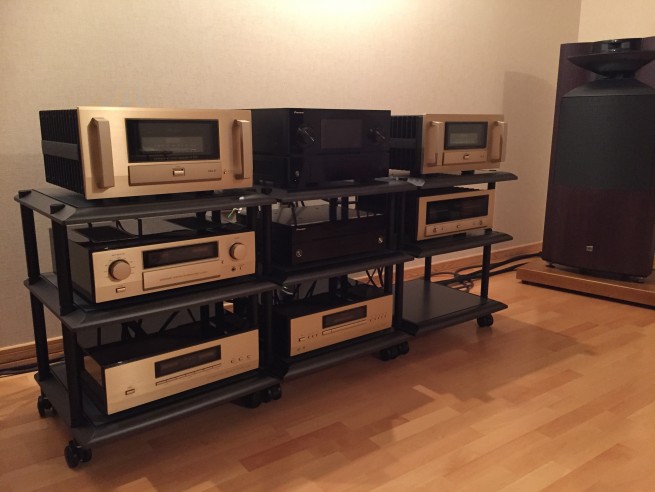 今回は、Accuphase A-250 モノーラルパワーアンプを導入させて頂きました。さらに、配線等も行いやすいように従来のラックを縦1列づつに分け、扱いやすくし音色ももちろんグレードアップしました。スピーカー等も従来より大幅にグレードアップしており、オーディオはもちろんホームシアターでも大変ご満足いただけるシステムとなりました。