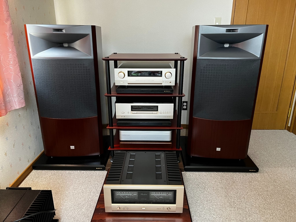 以前より検討されていた大型スピーカーを導入させていただきました。機器やスピーカーにも1台1台ボードを敷いており、さらに高音質を追及しております。