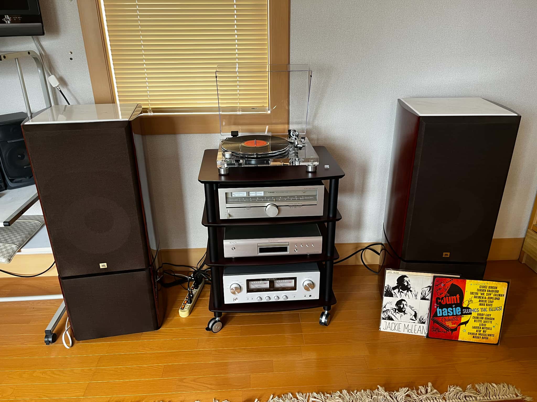 何度かご来店いただき、憧れのJBLスピーカーS-143MK2とオーディオテクニカ60周年記念モデルAT-LP2022を組み合わせたシステムです。アナログレコード再生は、なんと40年ぶりということで、これからごゆっくりとアナログの良さを楽しんでいただけるシステムが完成いたしました。