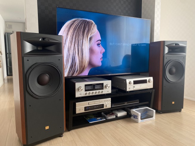 もっと迫力のあるサウンドを!!という事で、今ではなかなか珍しい35cmウーファーを搭載したJBLのS4600とLUXMANのL-507uXⅡを導入して頂きました。