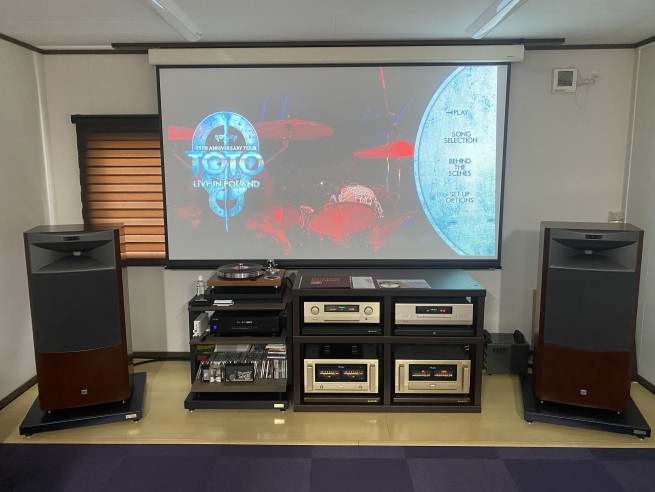 CD・レコードはもちろんのことスクリーンを通し、大画面で見るブルーレイディスクまで全てが大迫力・理想のシステムとなりました!