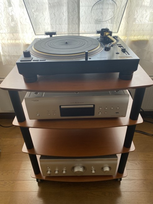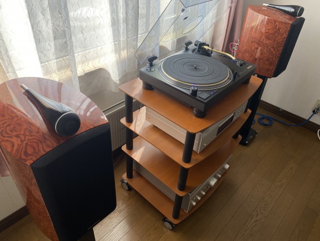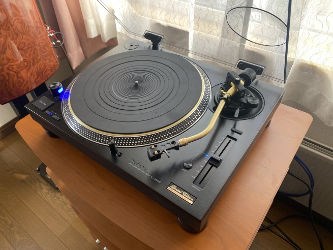 ご愛用されていたDENONのプレーヤーよりグレードアップのため、受注限定生産であるTechnicsの50周年記念特別カラー・ターンテーブル「SL-1200GAE-K」を導入させて頂きました