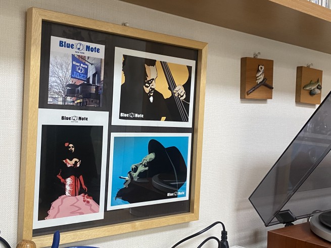 一枚目の画像はアメリカのブルーノートに伺われた際に撮影したお写真と貴重なポストカードを組み合わせた額縁です。